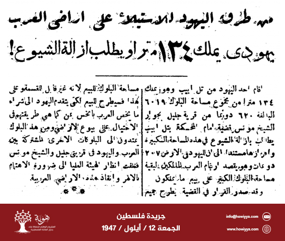 من طرق اليهود للاستيلاء على اراضي العرب 12/9/1947