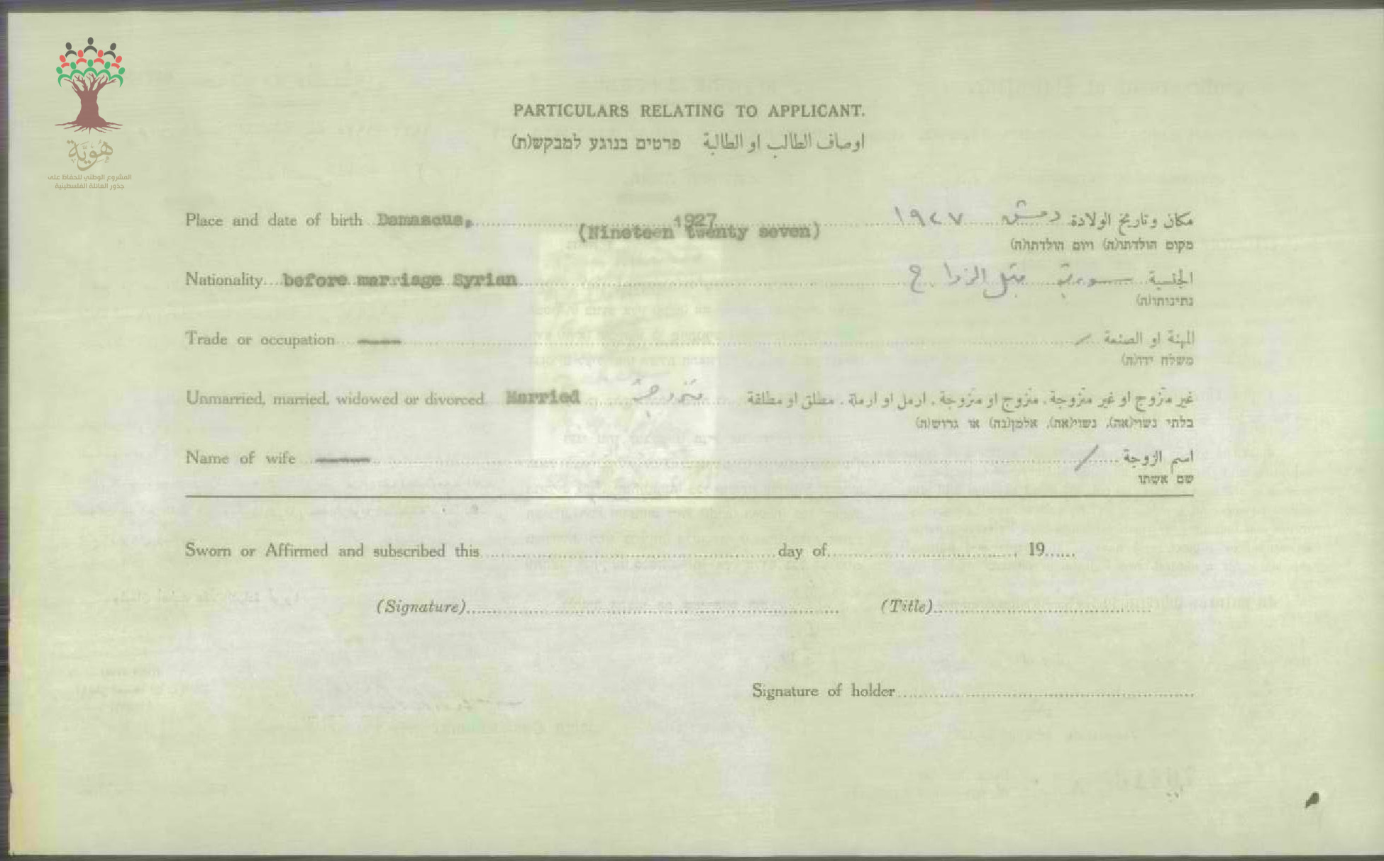 شهادة الجنسية الفلسطينية ل لوريس سمعان