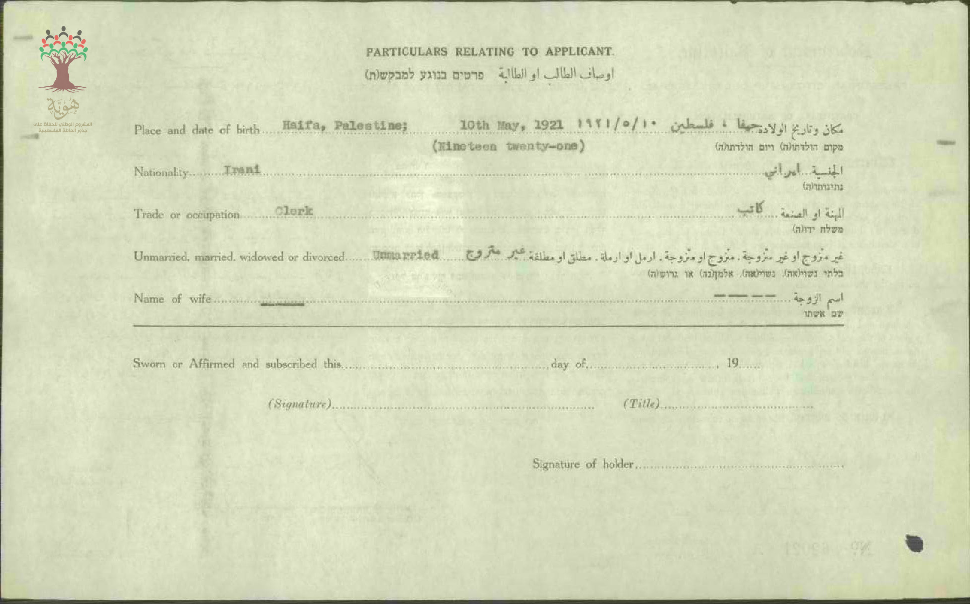 شهادة الجنسية الفلسطينية ل شفيق يزدي سياح
