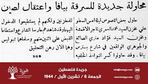 محاولة جديدة للسرقة بيافا واعتقال لصين 6/10/1944