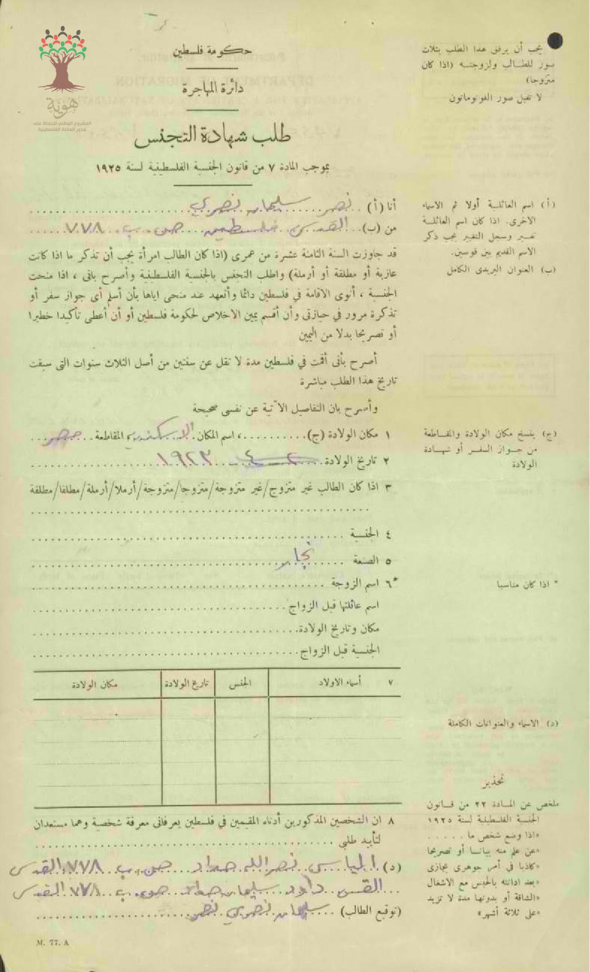 طلب الجنسية الفلسطينية-سليمان نصر-القدس/مصر