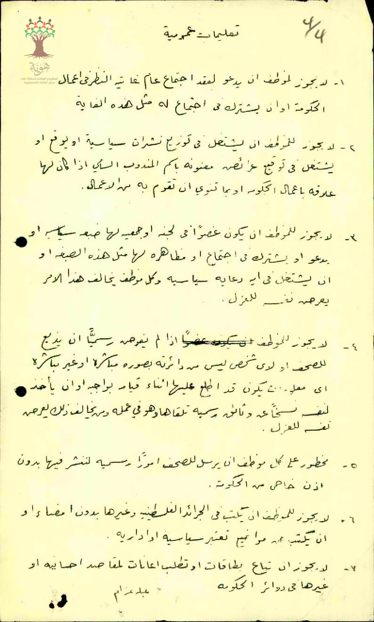 توقيع المعلمة عبلة قيصر عزام على التعليمات العمومية لإدارة المعارف