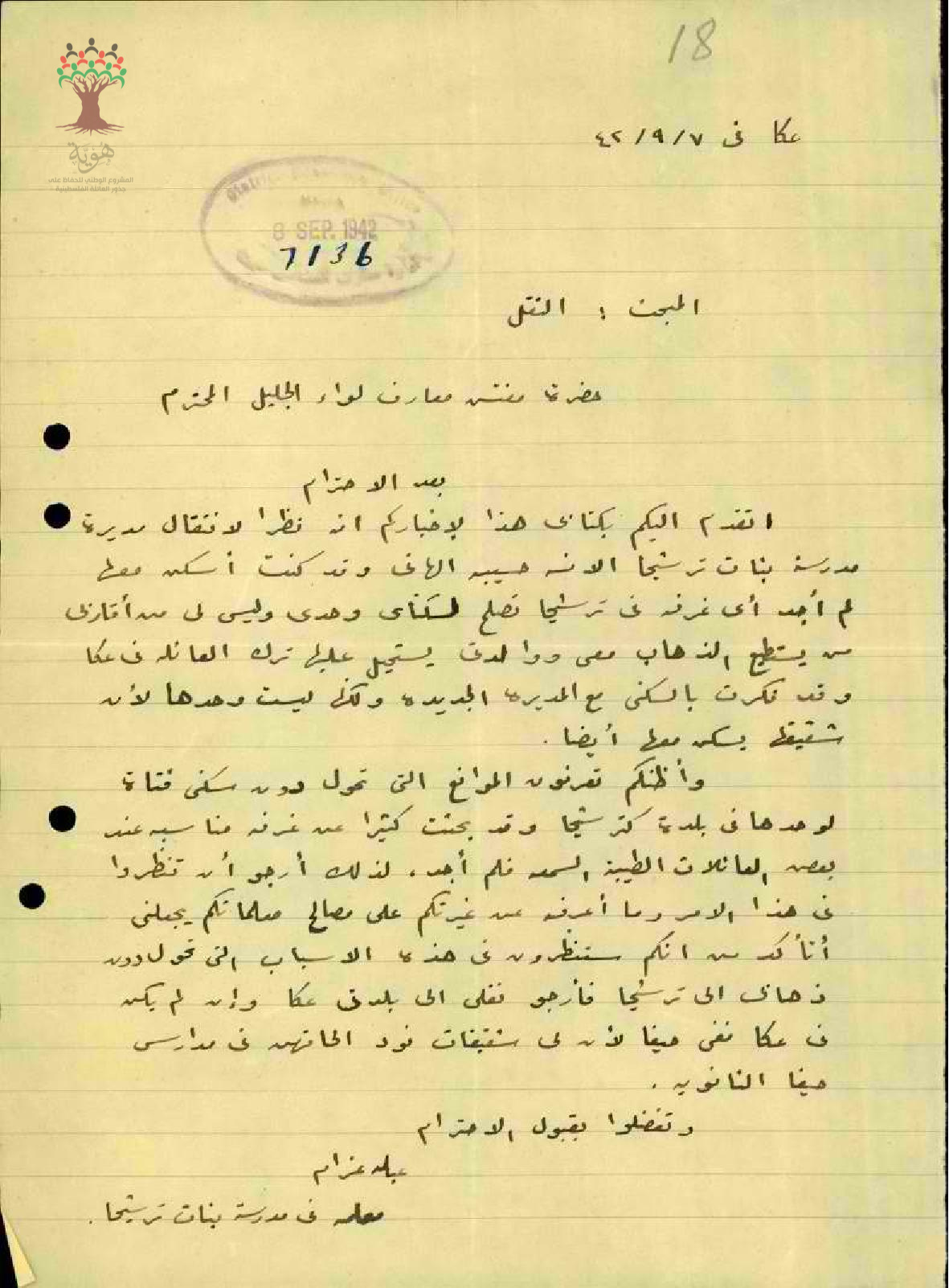 طلب نقل مقدم من المعلمة عبلة عزام من مدرسة ترشيحا للبنات