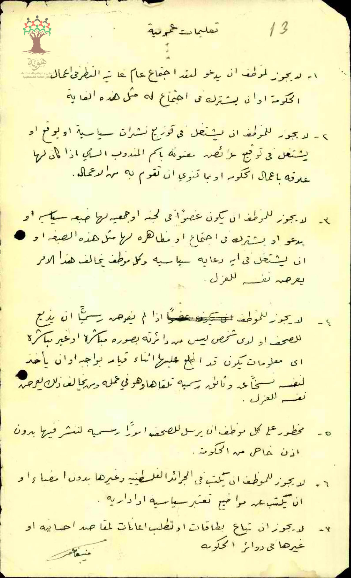 توقيع المعلم منيب فاعور على التعليمات العمومية لإدارة المعارف