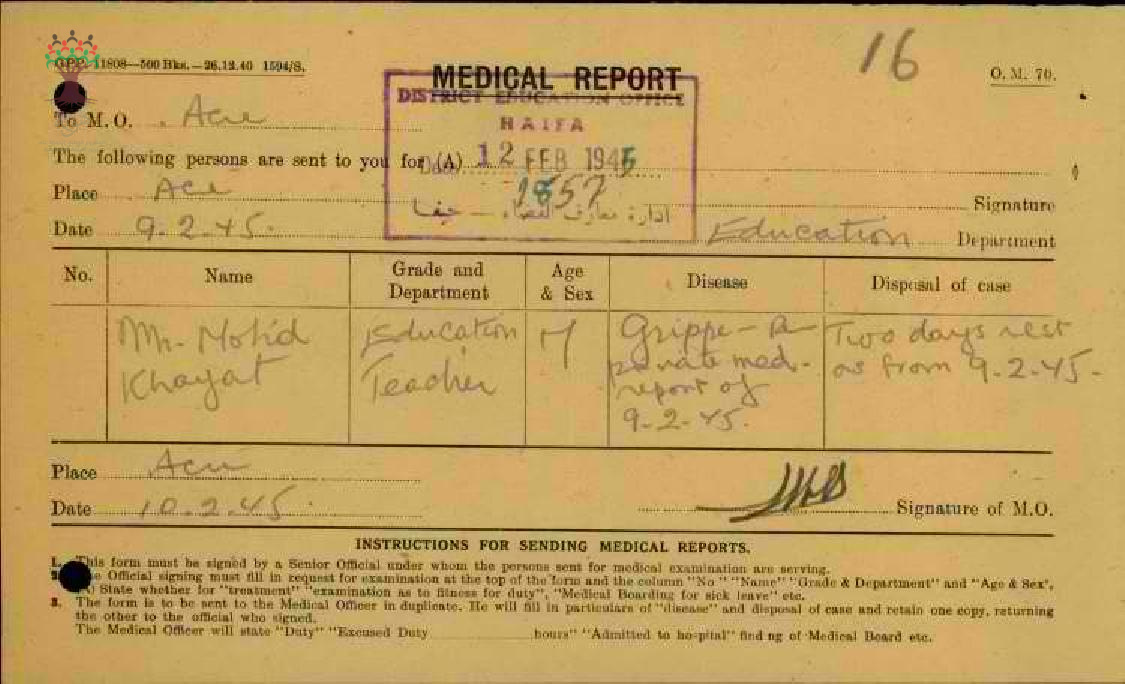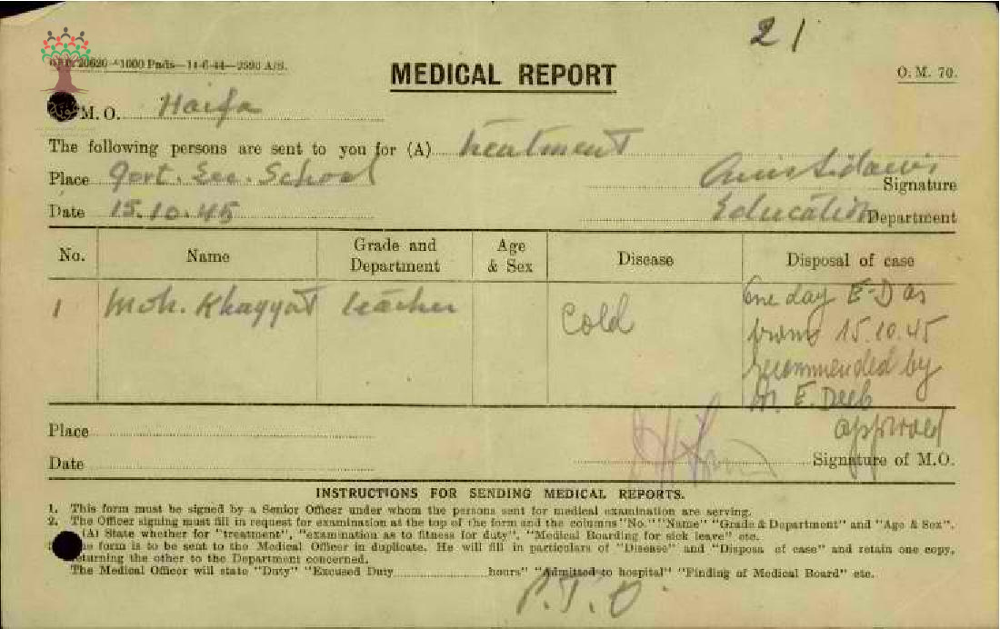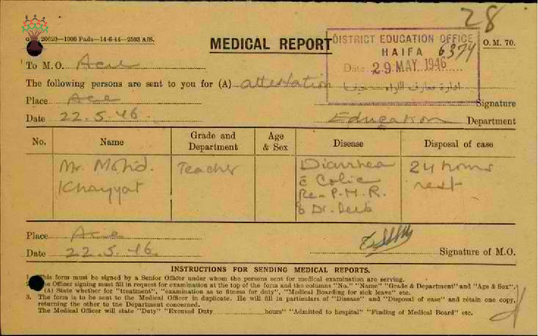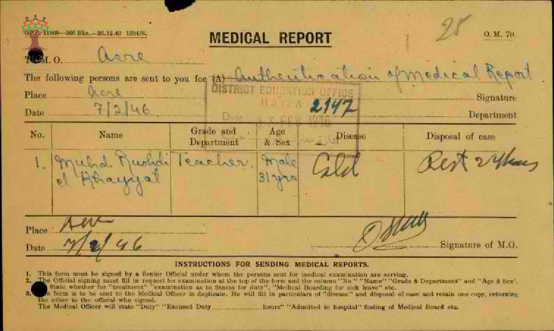 مجموعة تقارير طبية للمعلم محمد رشدي الخياط من سنة 1945 الى سنة 1948