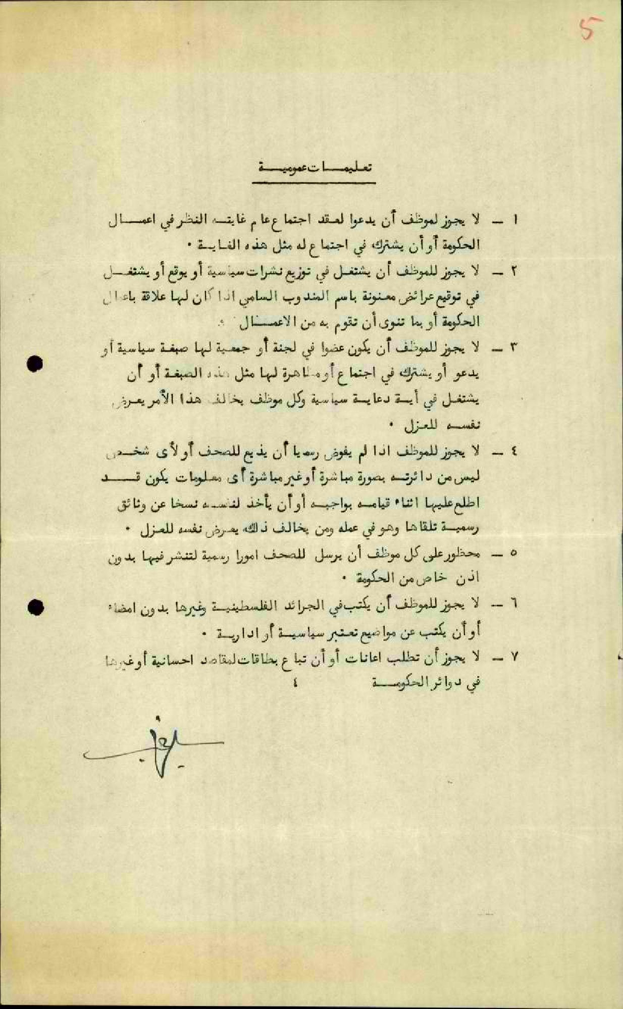 توقيع المعلم سليمان خميس على التعليمات العمومية لإدارة المعارف