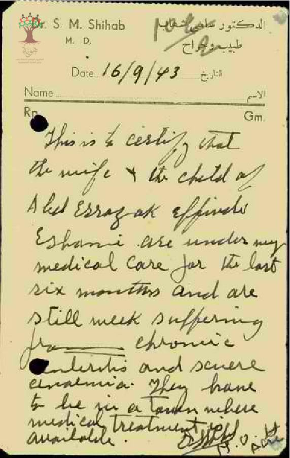 تقارير طبية بخصوص زوجة المعلم عبد الرزاق الشامي