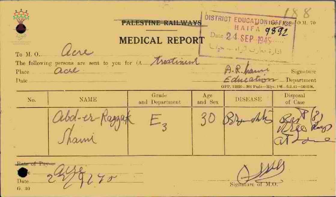 تقرير طبي عن غياب المعلم عبد الرزاق الشامي-مدرسة نحف