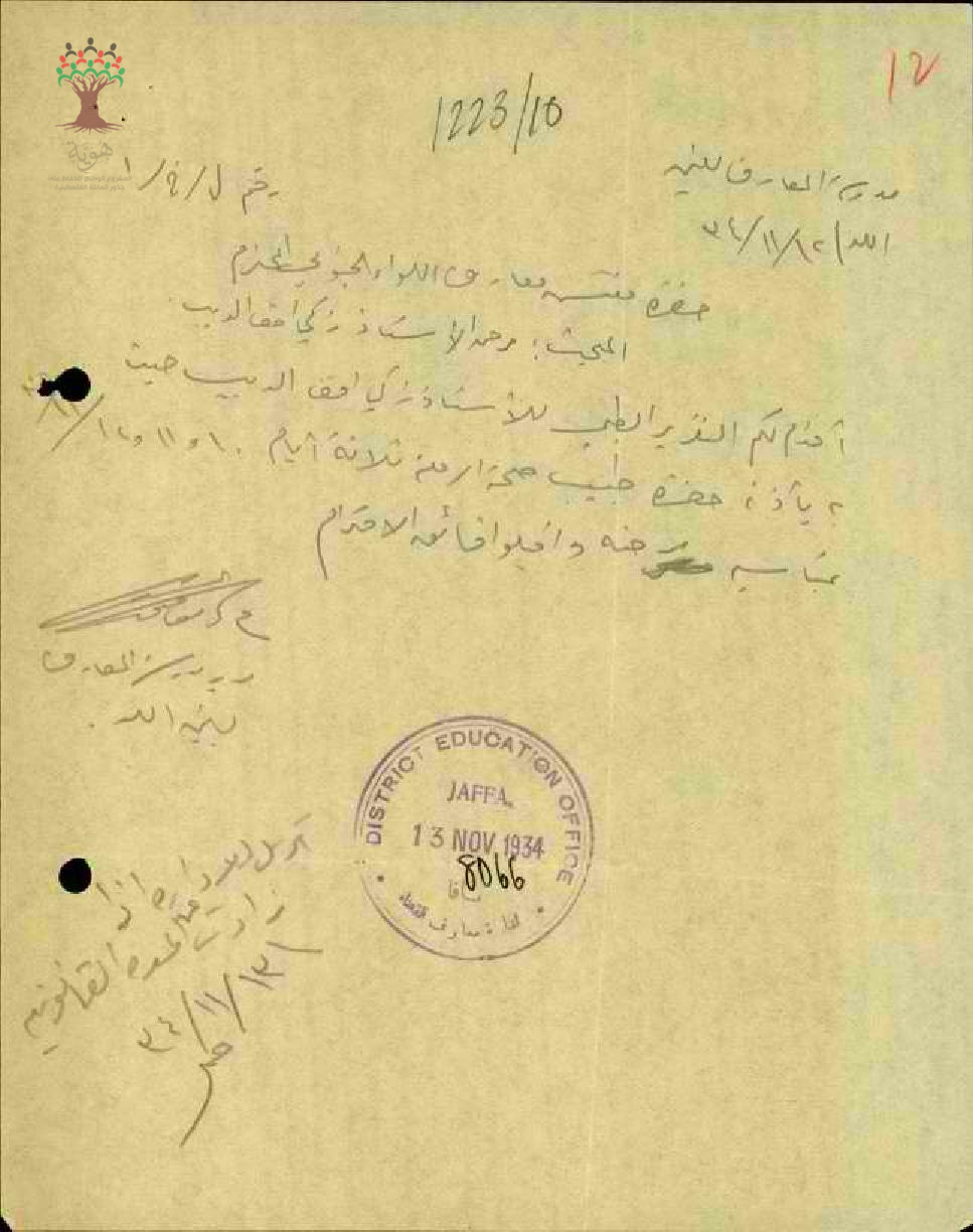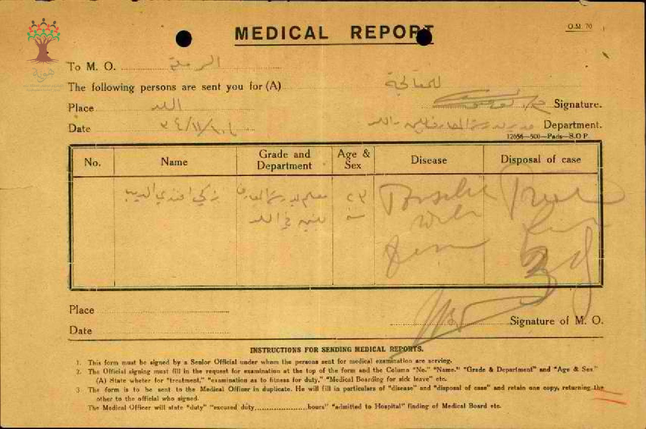 رسالة الى مفتش المعارف بخصوص مرض المعلم زكي ديب مرفقة بالتقرير الطبي