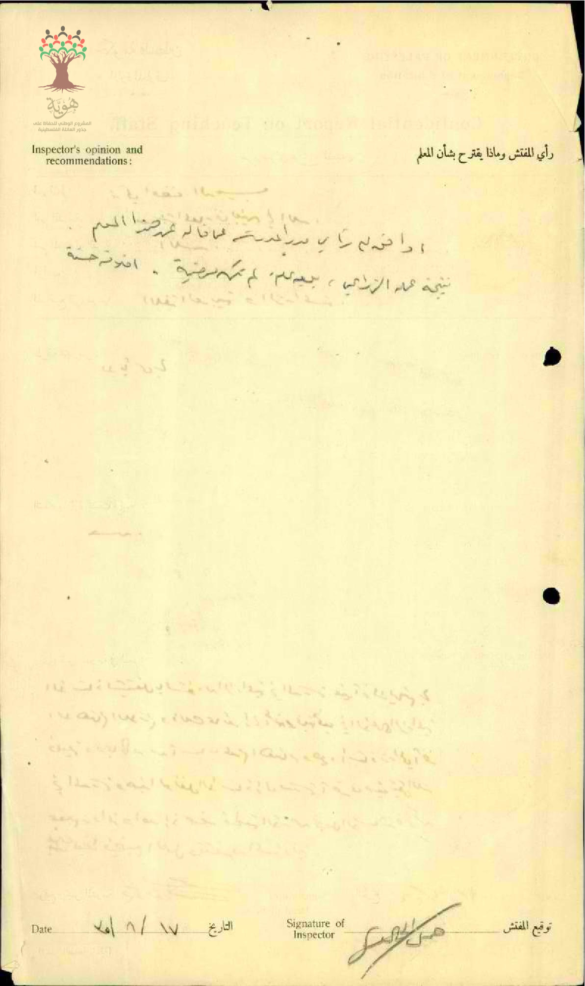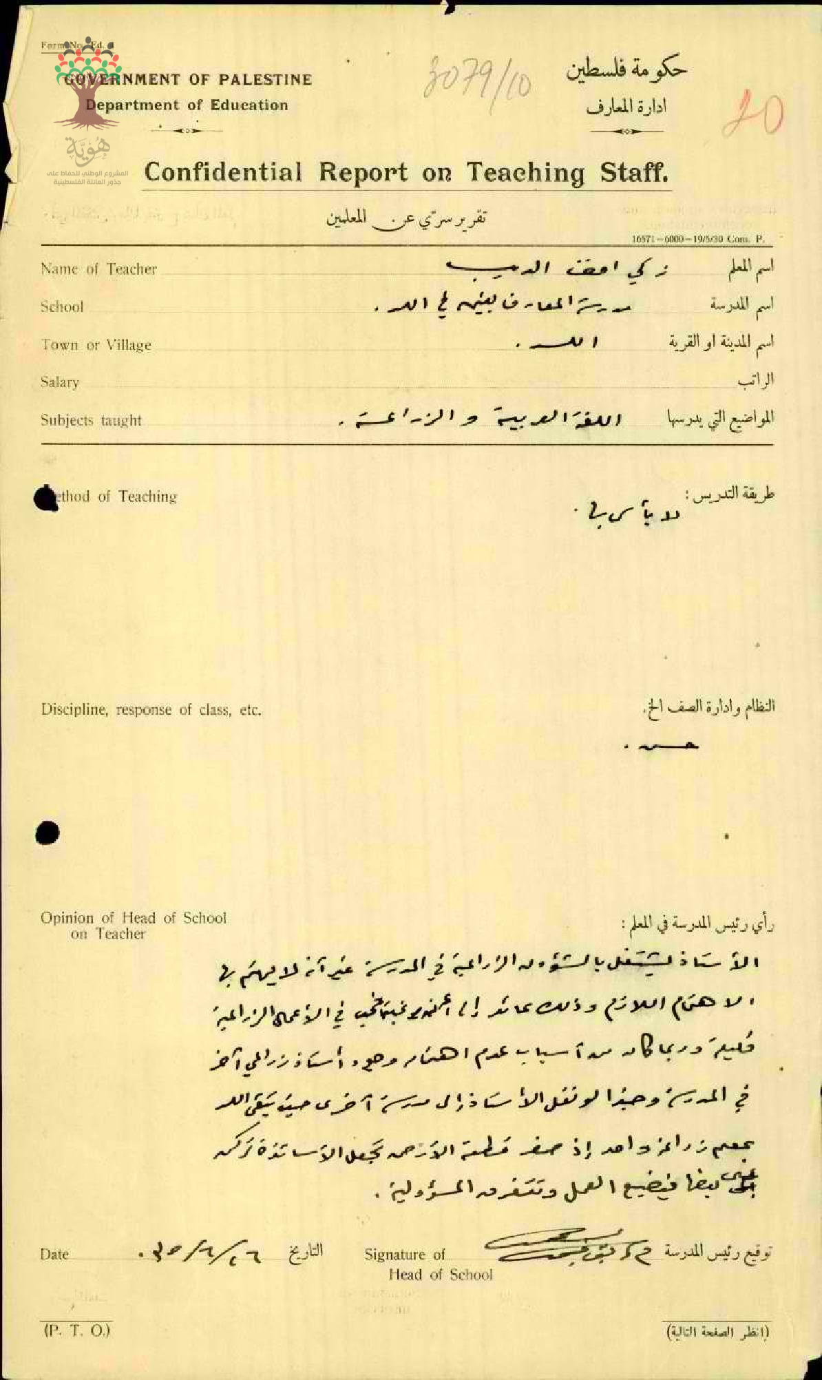 تقرير تفصيلي عن أداء المعلم زكي ديب في مدرسة اللد سنة 1935