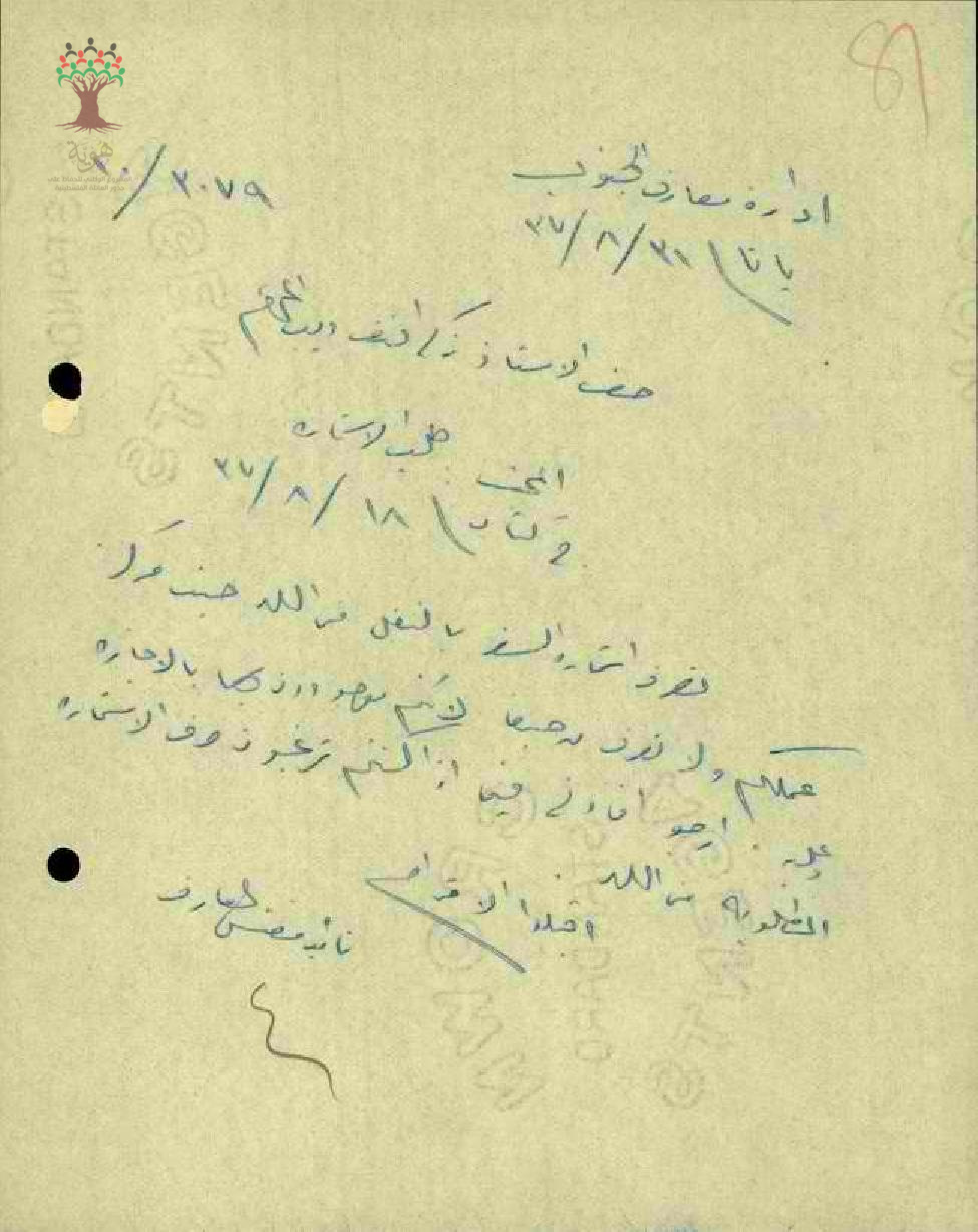 رسالة من مفتش المعارف الى المعلم زكي ديب يبحث معه موضوع استمارة النقل