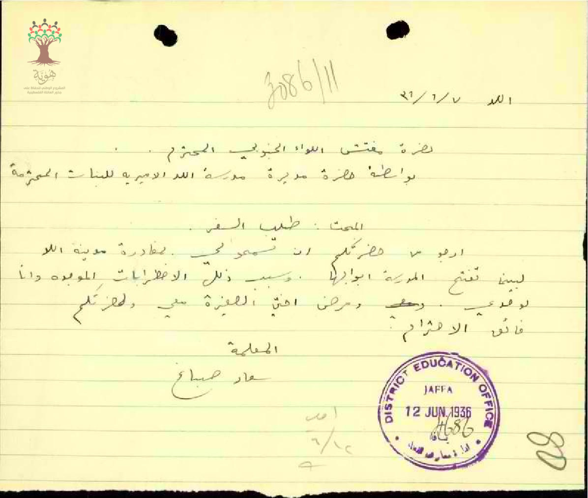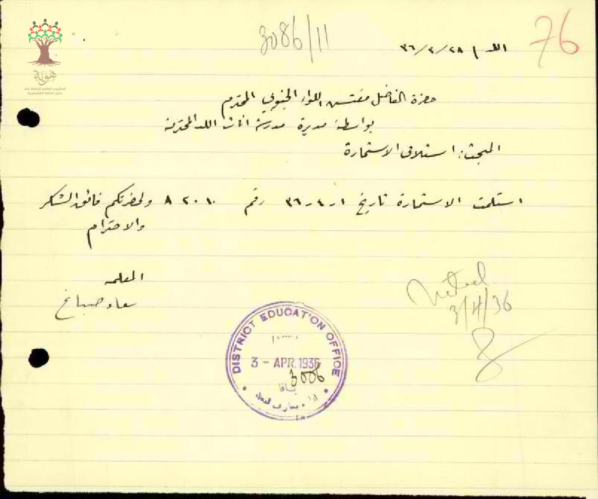 طلب استمارة سفر للمعلمة سعاد صباغ