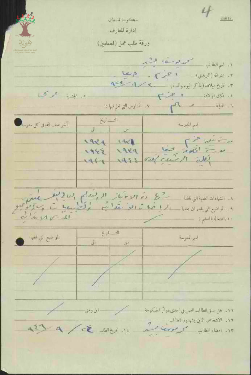 ورقة طلب عمل للمعلم محمد يوسف بشير/اجزم