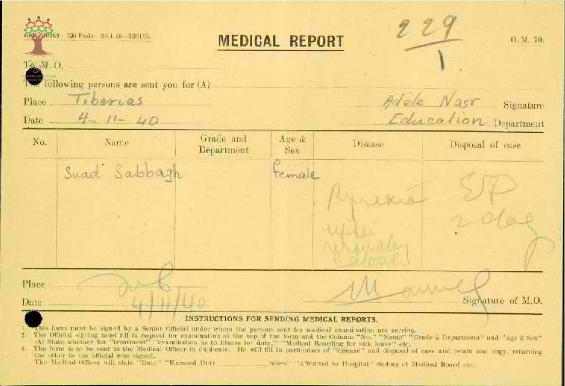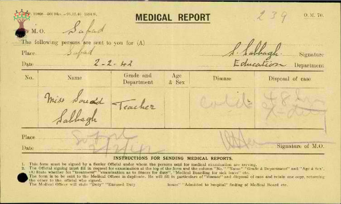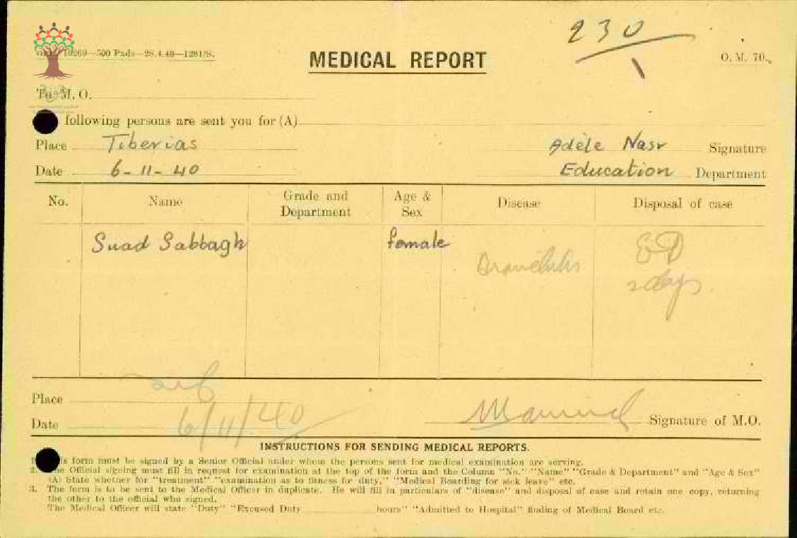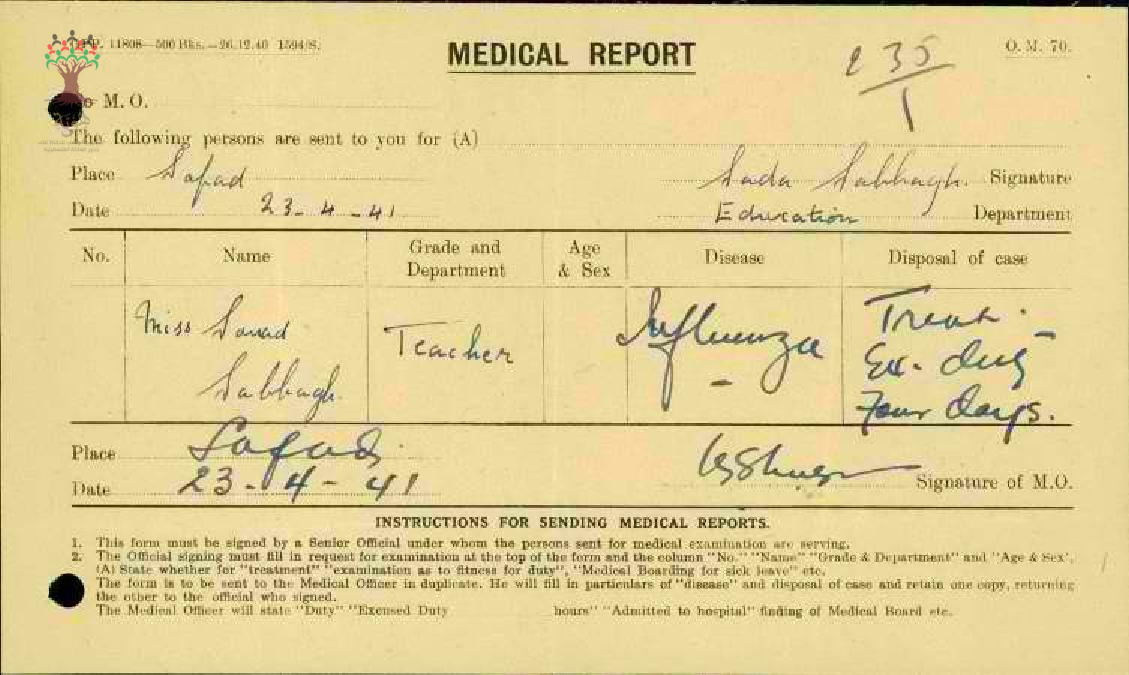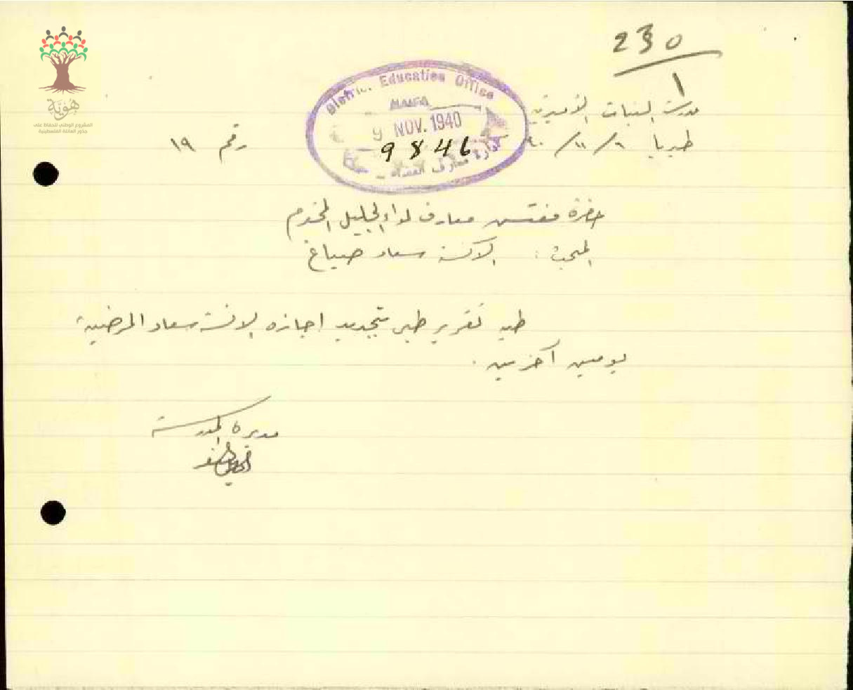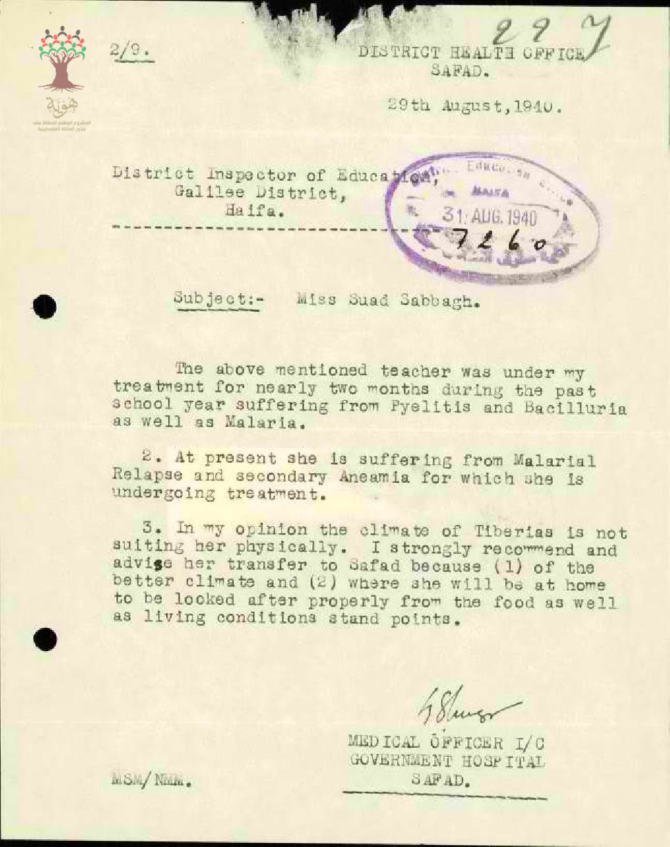 تقارير طبية لغياب المعلمة سعاد صباغ