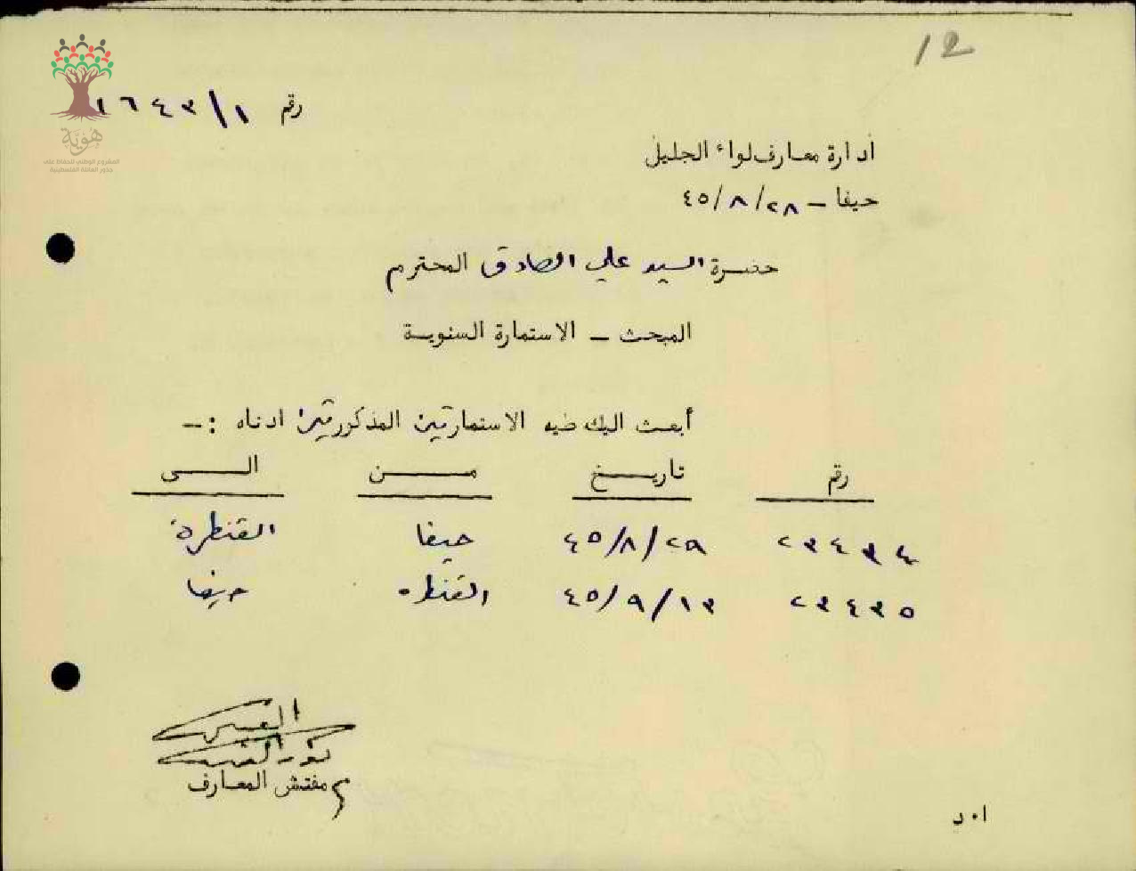 | الأشخاص المذكورين في الوثيقة: |