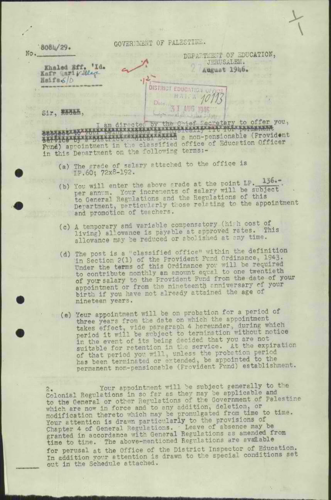 توقيع المعلم خالد عيد على شروط التعيين