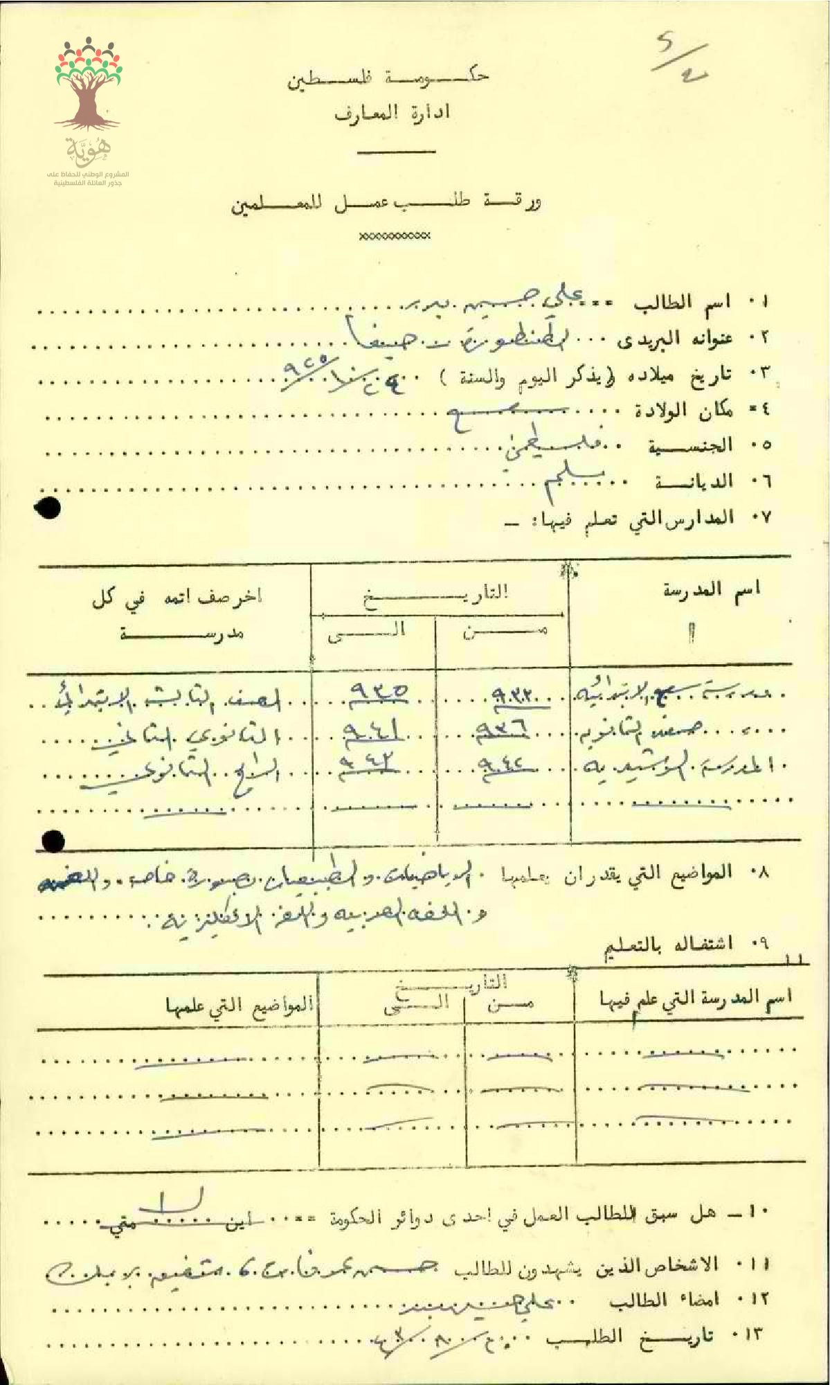 ورقة طلب عمل للمعلم عل بدر /سعسع