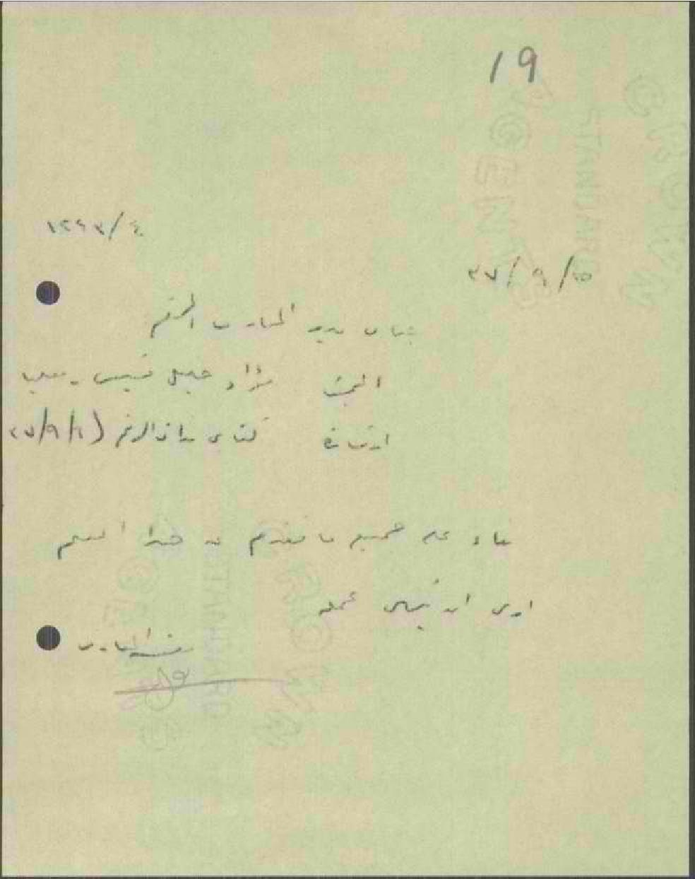 رسالة من مفتش المعارف إلى مدير المعارف بخصوص إنهاء عمل المعلم فؤاد قسيس