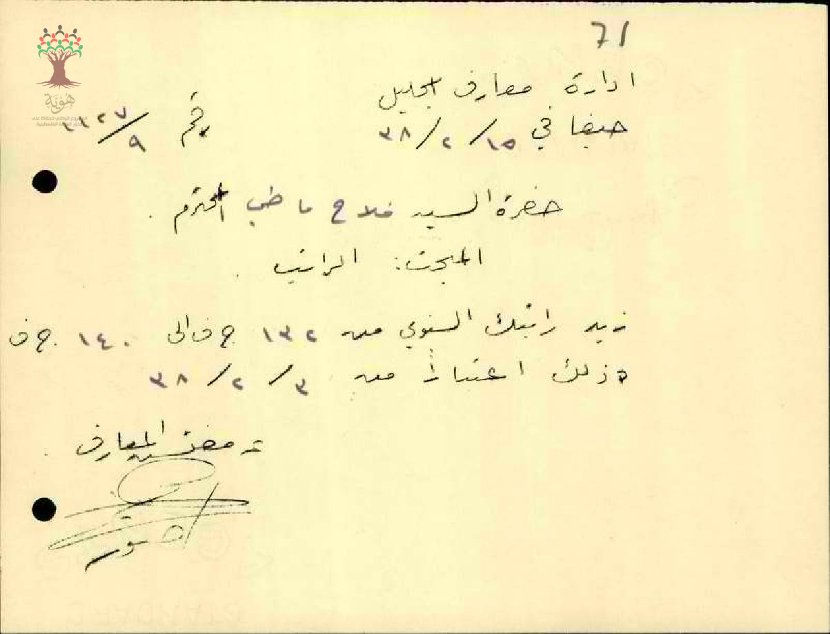 رسالة من مفتش المعارف الى المعلم فلاح الماضي بخصوص زيادة راتبه السنوية
