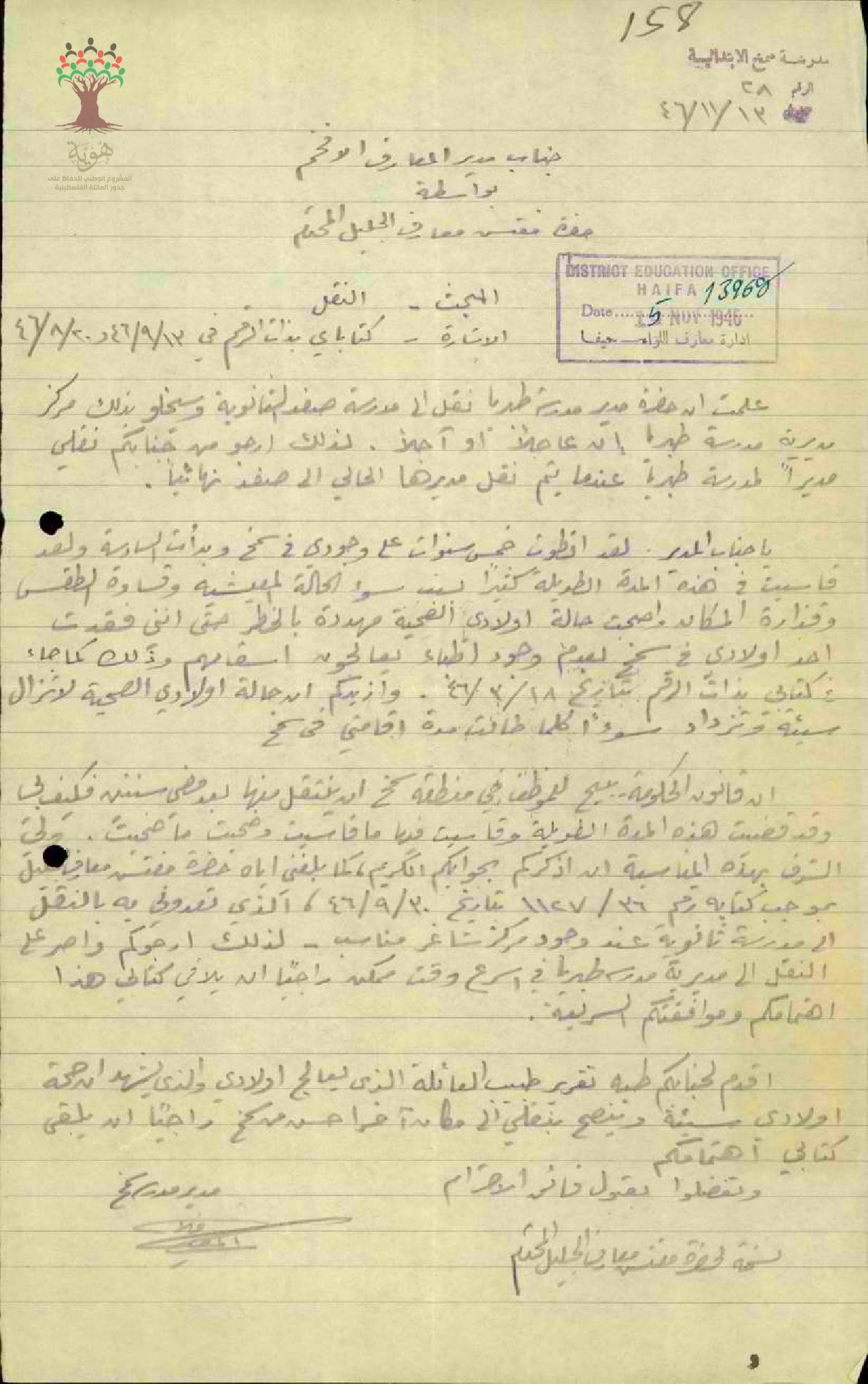 طلب نقل مقدم من المعلم فلاح الماضي من مدرسة سمخ