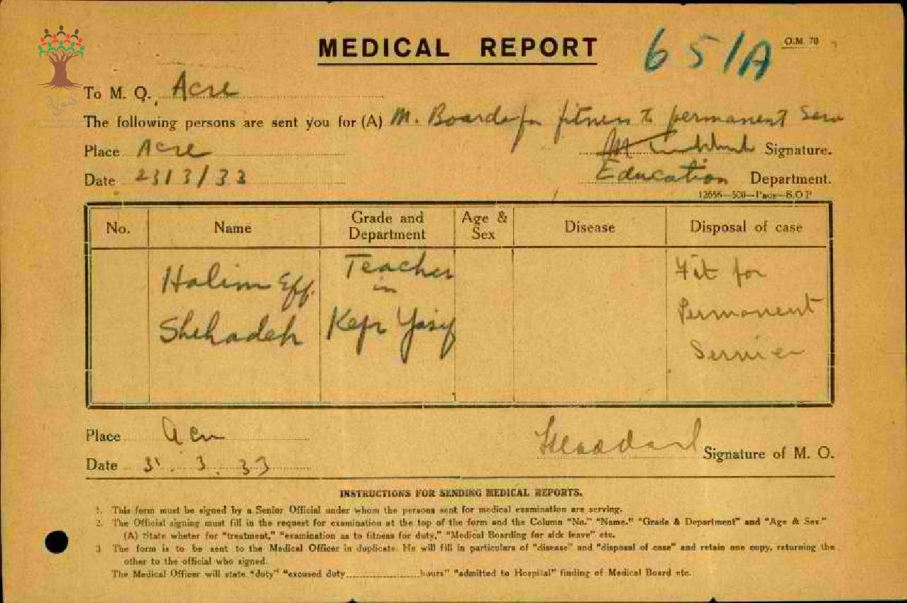 تقرير طبي عن غياب المعلم حليم شحادة-مدرسة كفر ياسيف