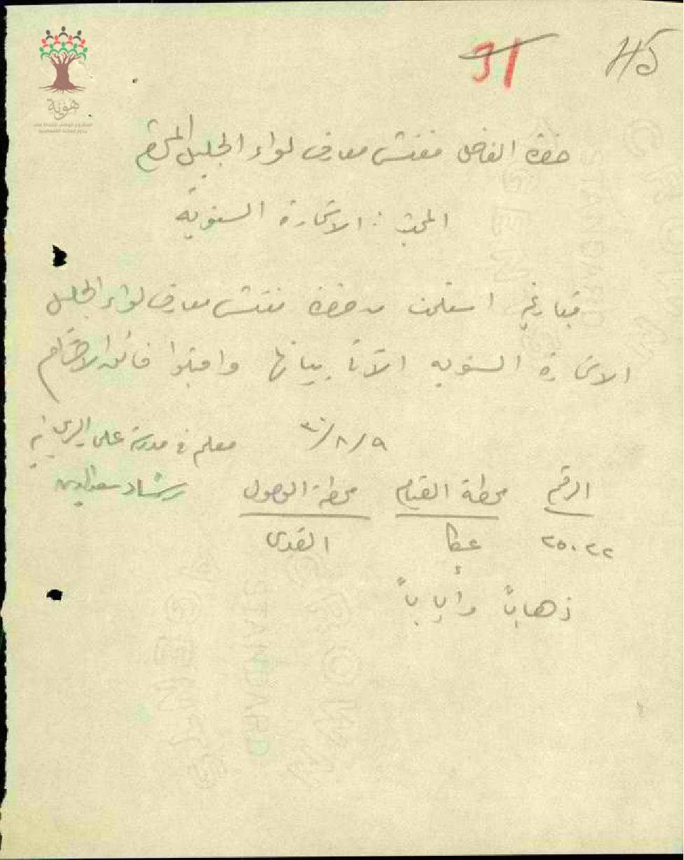 رسالة من معلم رشاد سعد الدين مدرس في مدرسة علما الريحانية إلى مفتش معارف لواء الجليل بخصوص الإستماره السنوية