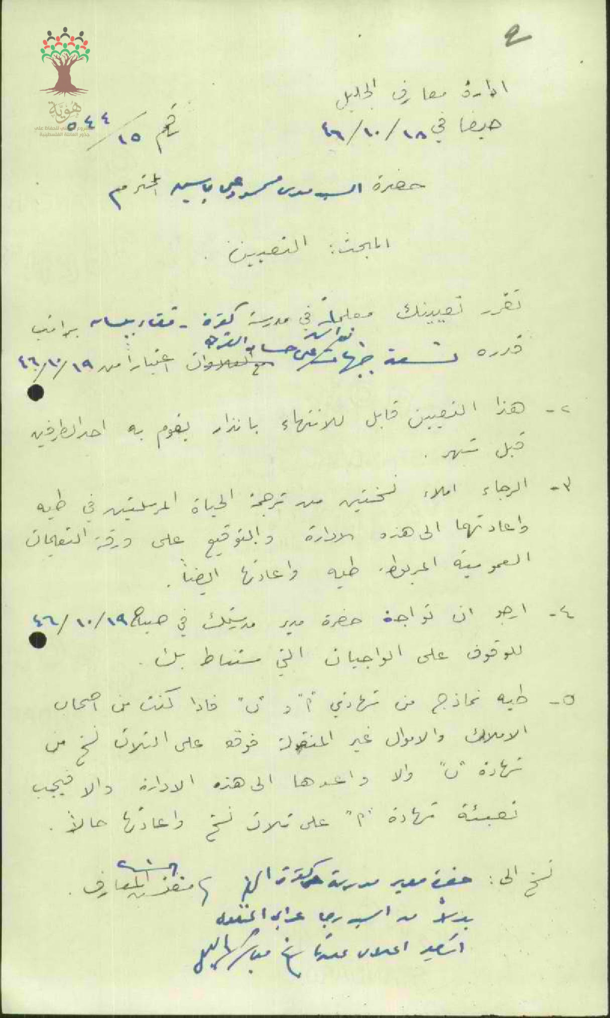 تعيين المعلم موسى محمود علي ياسين معلماً في مدرسة جبع للذكور
