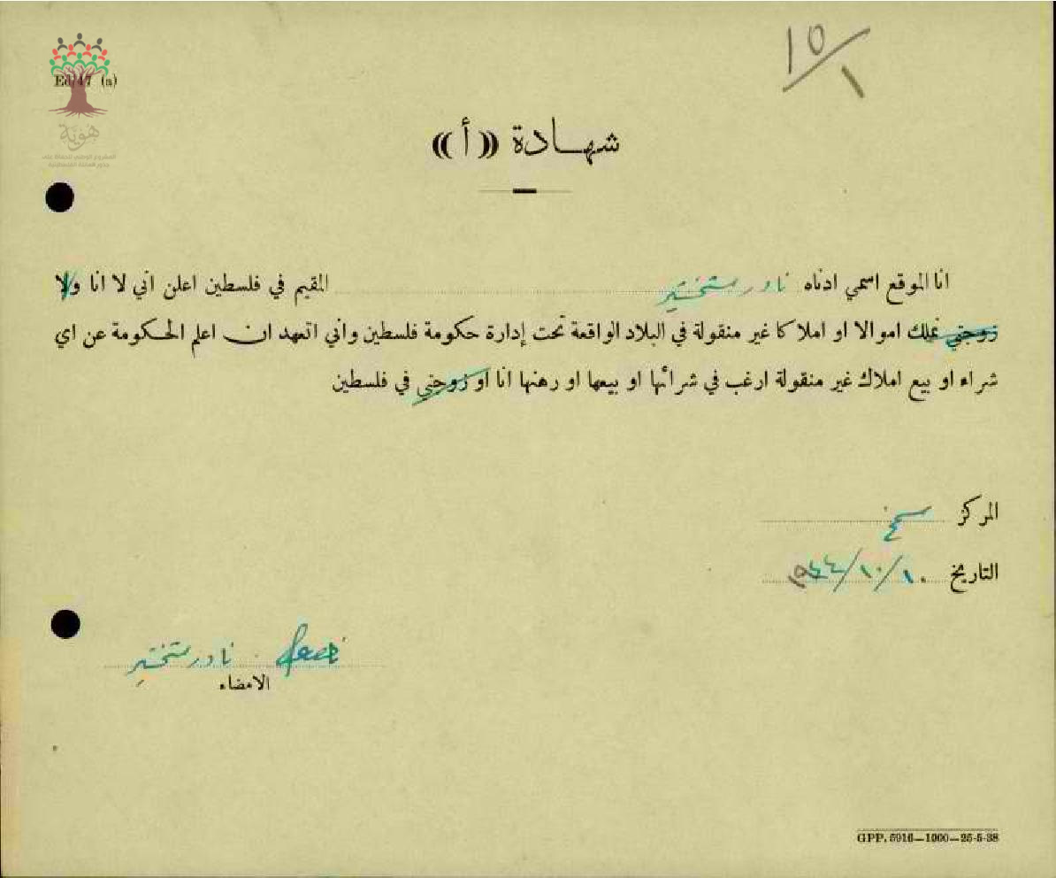شهادة نفي ملكية-نادر الشخشير/بيسان