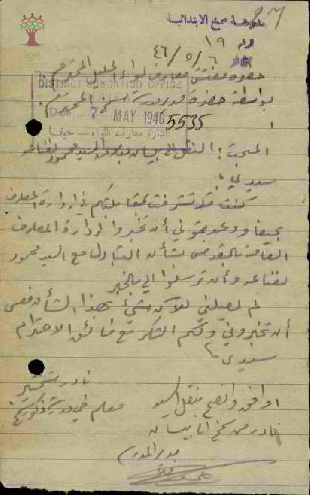 طلب نقل مقدم من المعلم نادر الشخشير من مدرسة سمخ