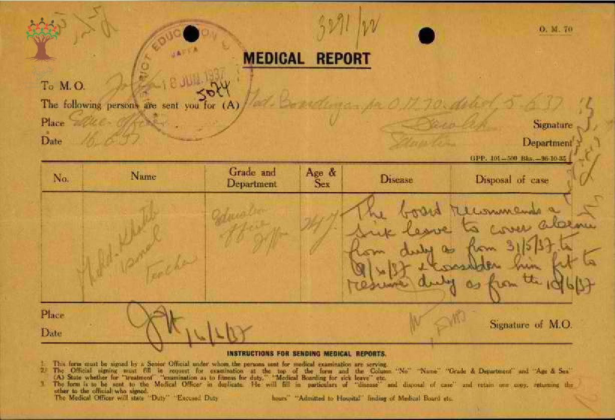 تقرير طبي لغياب المعلم محمد الخطيب