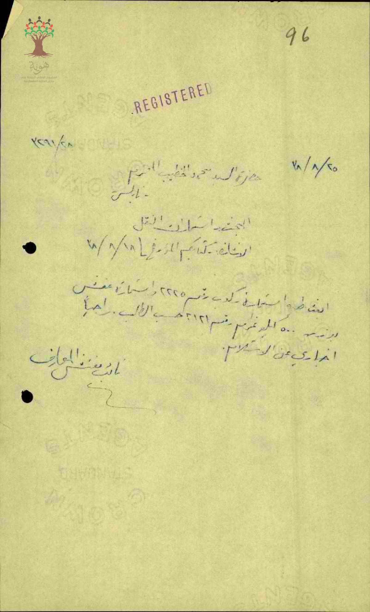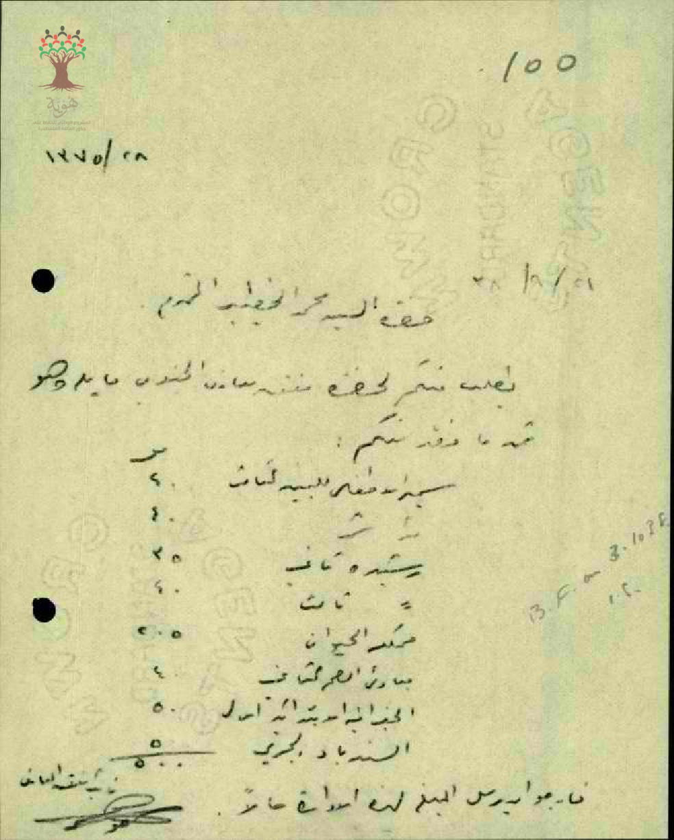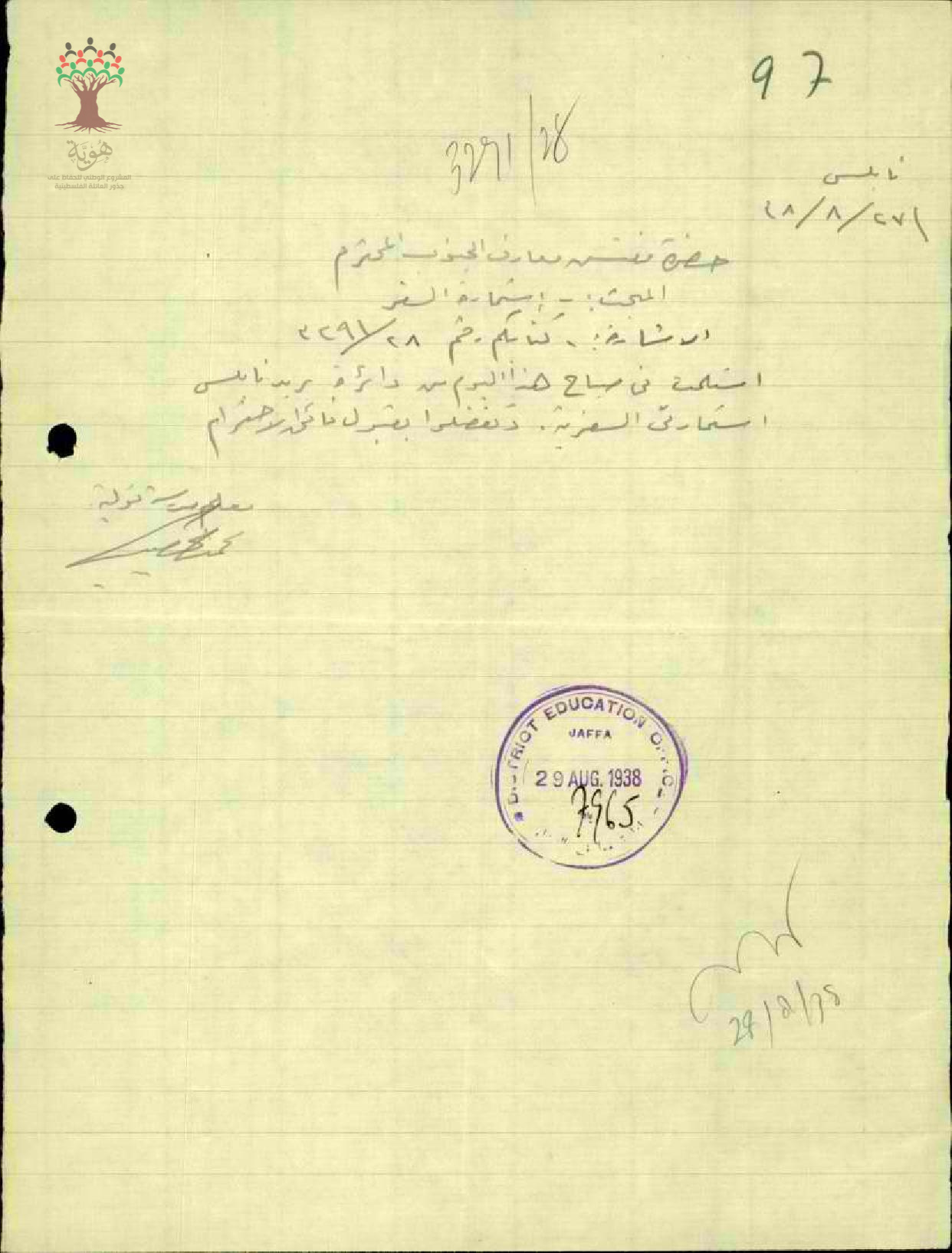 رسالة من المعلم محمد الخطيب إلى مفتش المعارف يطلب استمارة سفر ونقل