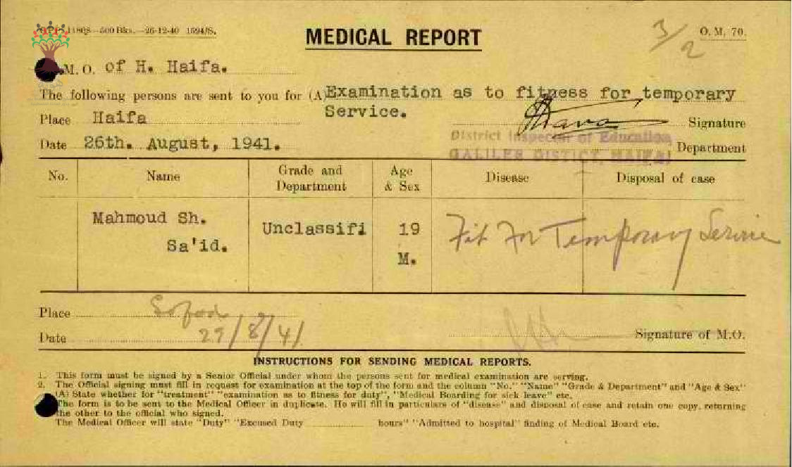 تقرير طبي لتوظيف المعلم محمود السعيد/الجاعونة