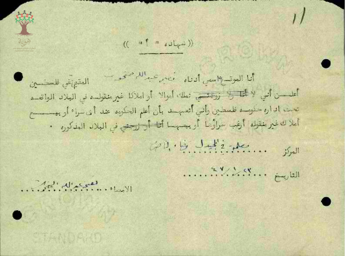 شهادة نفي ملكية-نعيمة حتحوت/الناصرة