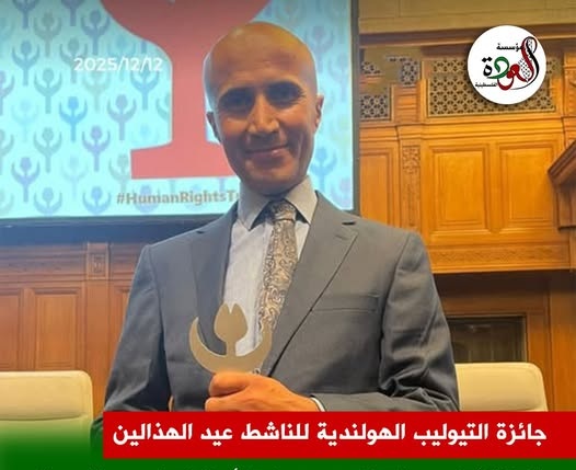 منحت وزارة الخارجية الهولندية الناشط الحقوقي الفلسطيني عيد الهذالين جائزة "التوليب" التي تقدّمها الوزارة لأفضل 10 أشخاص من المدافعين عن حقوق الإنسان، مما يعكس اعترافًا دولياً بمساهماته.