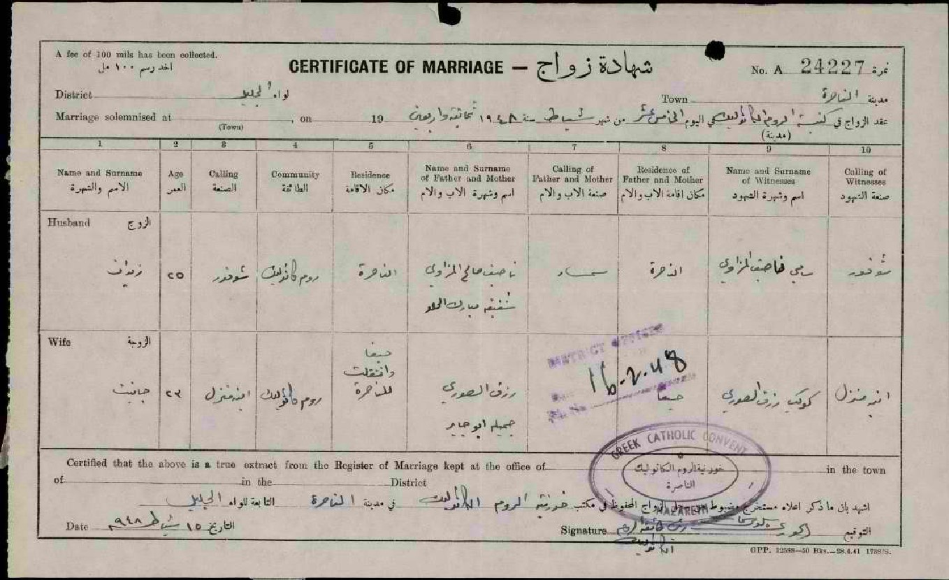 اسم الزوج زيدان ناصيف صالح المزاوي-الناصرة