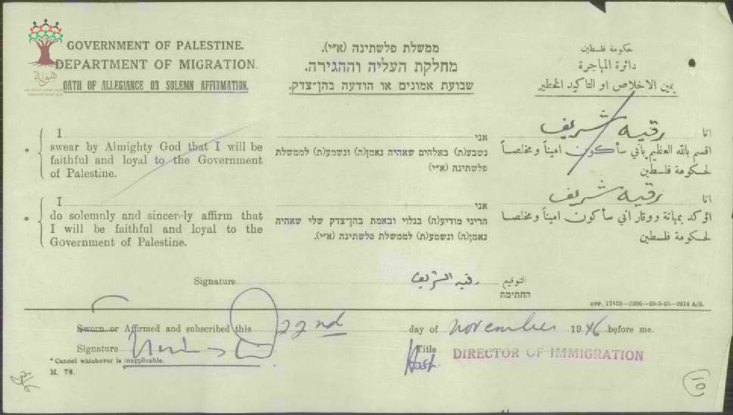 رقية شريف توقع على (يمين الإخلاص) للحصول على الجنسية الفلسطينية