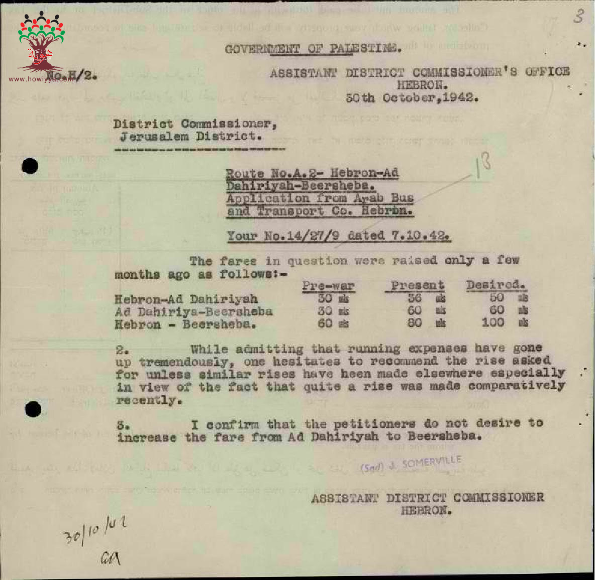 مجموعة رسائل بخصوص زيادة أجرة الباص على خط الظاهرية-بئر السبع بسبب ارتفاع كلفة الصيانة والقطع