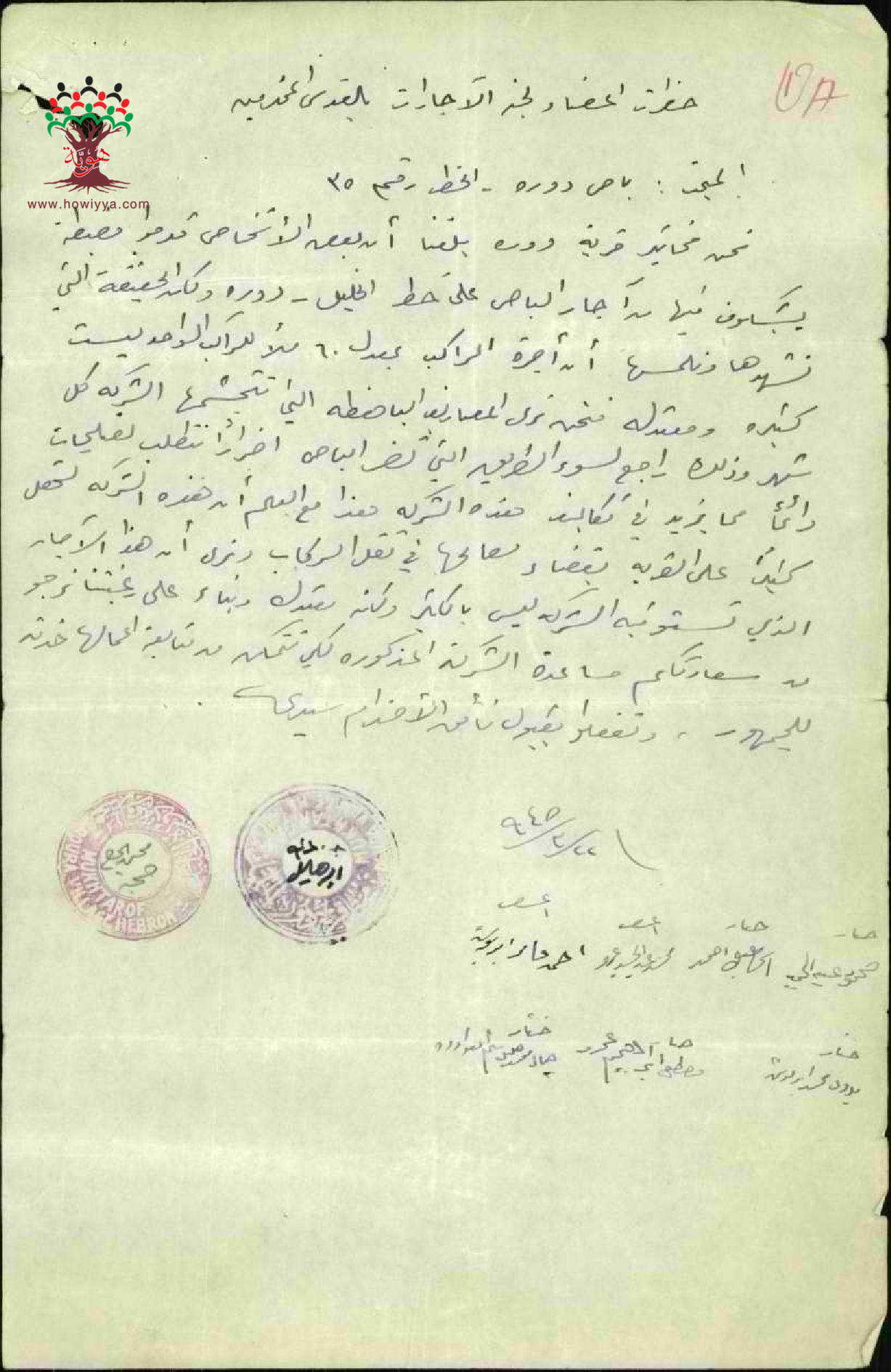 رسالة من مخاتير قرية دورة الى أعضاء لجنة الاجارات في القدس بخصوص تكاليف النقل عبر باص دورة حيث يضطر أصحاب الشركة الى رفع التعرفة بسبب سوء الطريق وبالتالي الاصلاحات الدائمة التي يحتاجها الباص