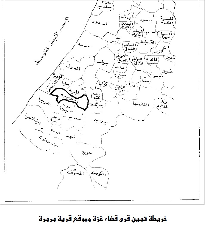 بربرة كلمة آرامية بمعنى (بدوي) ، تقع على بعد 17 كم إلى الشمال الشرقي من مدينة غزة، وبين مدينتي غزة والمجدل، وعلى الجانب الغربي لطريق وخط سكة حديد رفح – حيفا، وتحيط بالقرية قرى برير، سمسم، بيت جرجا، هربيا، الخصاص، نعليا، الجية، بيت طيما وحليقات.