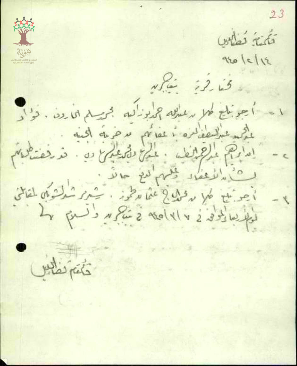بلغ عدد سكانها سنة 1945م (2430) نسمة من المسلمين، وأهم زراعاتهم: الحبوب واشجار الفاكهة والزيتون (3500) دونم، ينسب إليها عدد من العلماء باسم (جبريني) وفي العهد المملوكي شهر منها محمد ابن نبهان بن عمر بن نبهان الجبريني. كان يطعم كل من يرد إليه، وتوفي سنة 744ه- . قال ابن الوردي: