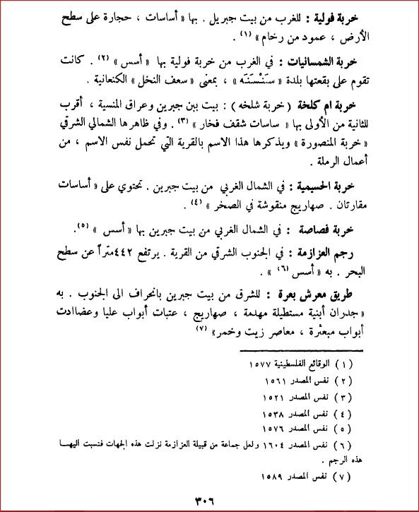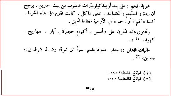 وبها قبر الصحابي تميم الدراي، أبو رقية، وأحفاده في الخليل. وكان يعقد فيها سوق أسبوعي يوم الثلاثاء.. هدمها اليهود وشردوا سكانها وأقاموا عام 1949م على بعد كيل واحد مستعمرة (بيت جفرين) وتستغل الآثار استغلالاً سياحياً.