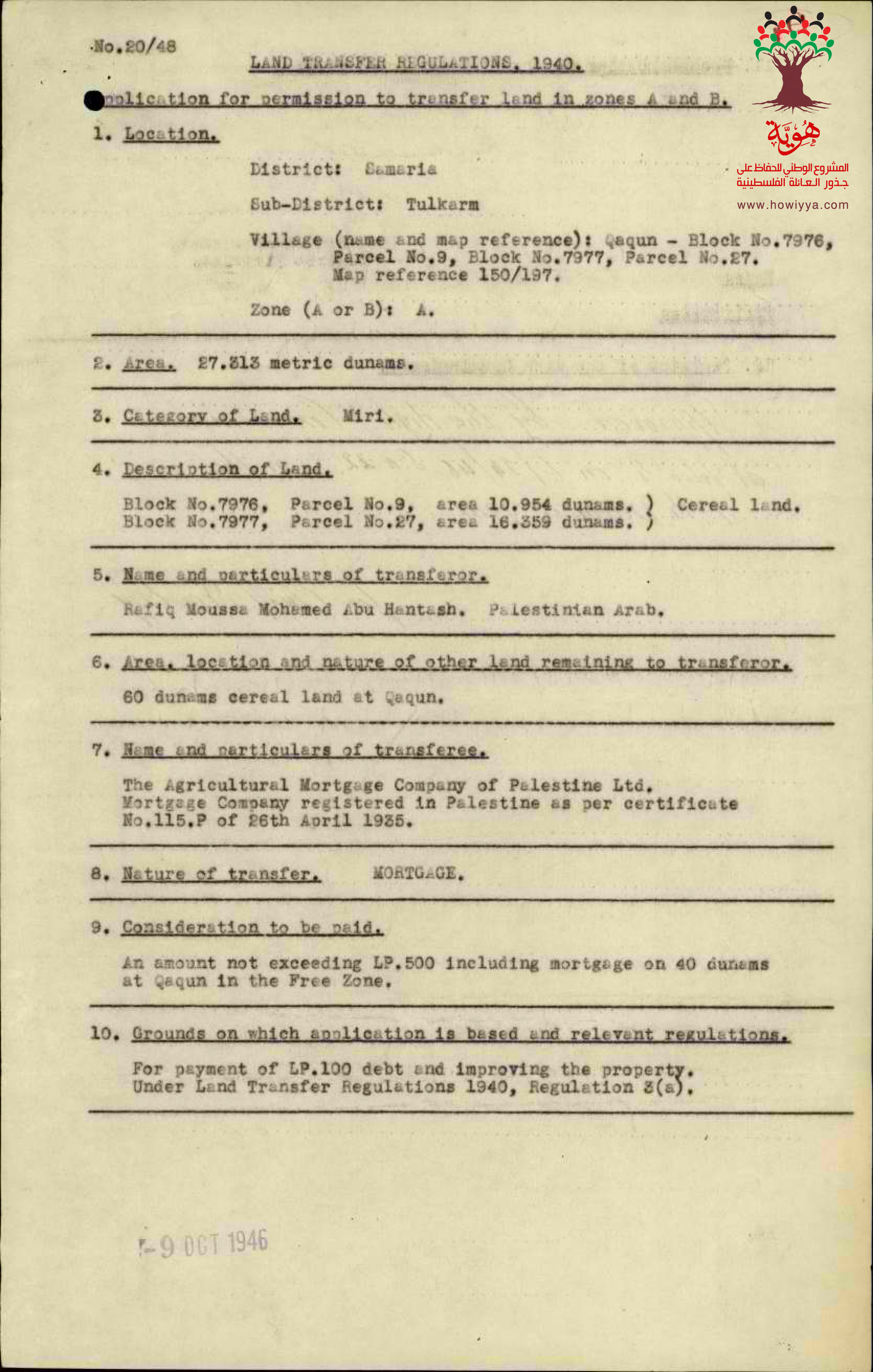 قرية تقع في ظاهر مدينة طولكرم الشمالي الغربي وتبعد عنها سبعة أكيال.. دمرت في الحروب الصليبية، وعمرها بيبرس، ثم دمرها إبراهيم باشا، وعادت الى الحياة بعد ذلك، وكانت في العهد المملوكي محطة للحمام الزاجل، ذكرها ياقوت ونسب اليها عدداُ من العلماء، وفي الدرر الكامنة لابن حجر، نسب إليها علماء با سم (القاقوني). ووصفها القلقشندي في صبح الاعشى، ولها ذكر في كتاب الجبرتي، أثناء الحديث عن غزو نابليون. بلغ عدد سكانها سنة 1945م (1970) نسمة، ومن عائلاتها أبو هنطش وعائلة الزيدانية. هدمها الاعداء سنة 1948م وأقاموا على أرضها المستعمرات منها مستعمرة (روفين).