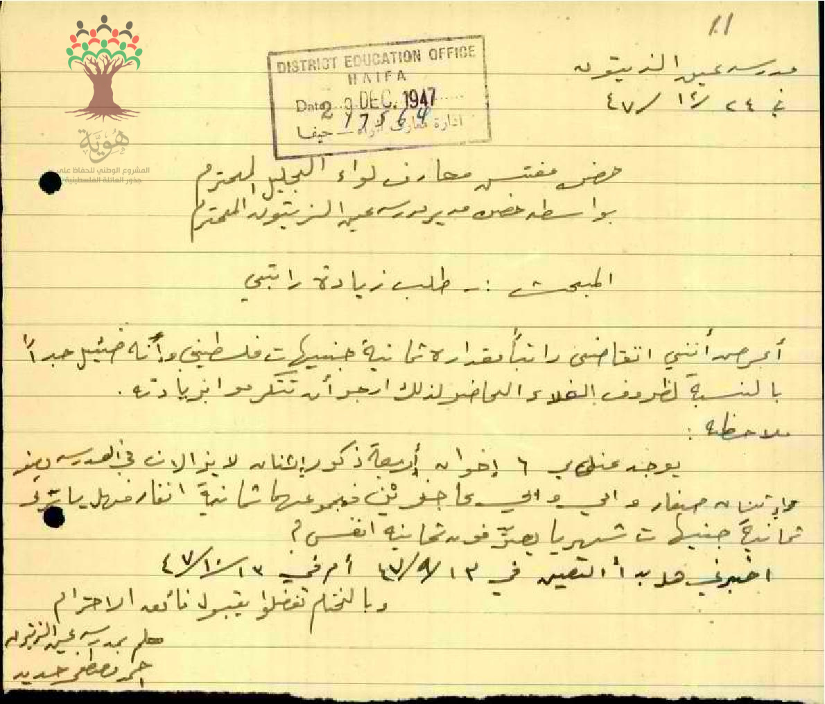 المعلم احمد مصطفى حديد - طلب زيادة الراتب