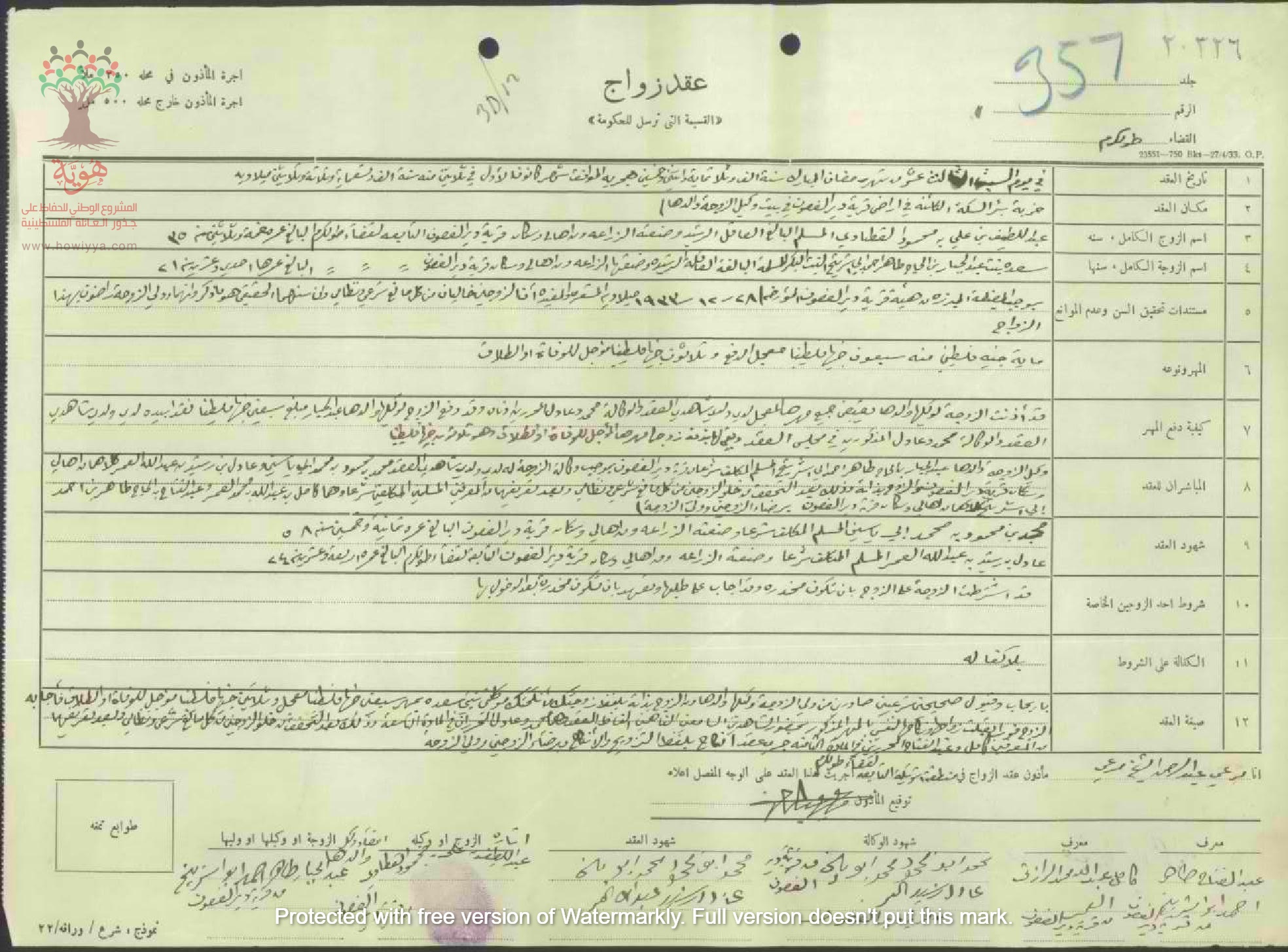 عقد زواج : عبد اللطيف القطناوي - سعدية شريتح - دير الغصون