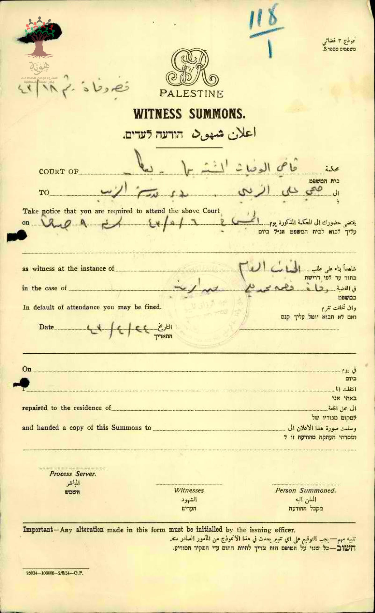 | الأشخاص المذكورين في الوثيقة: |