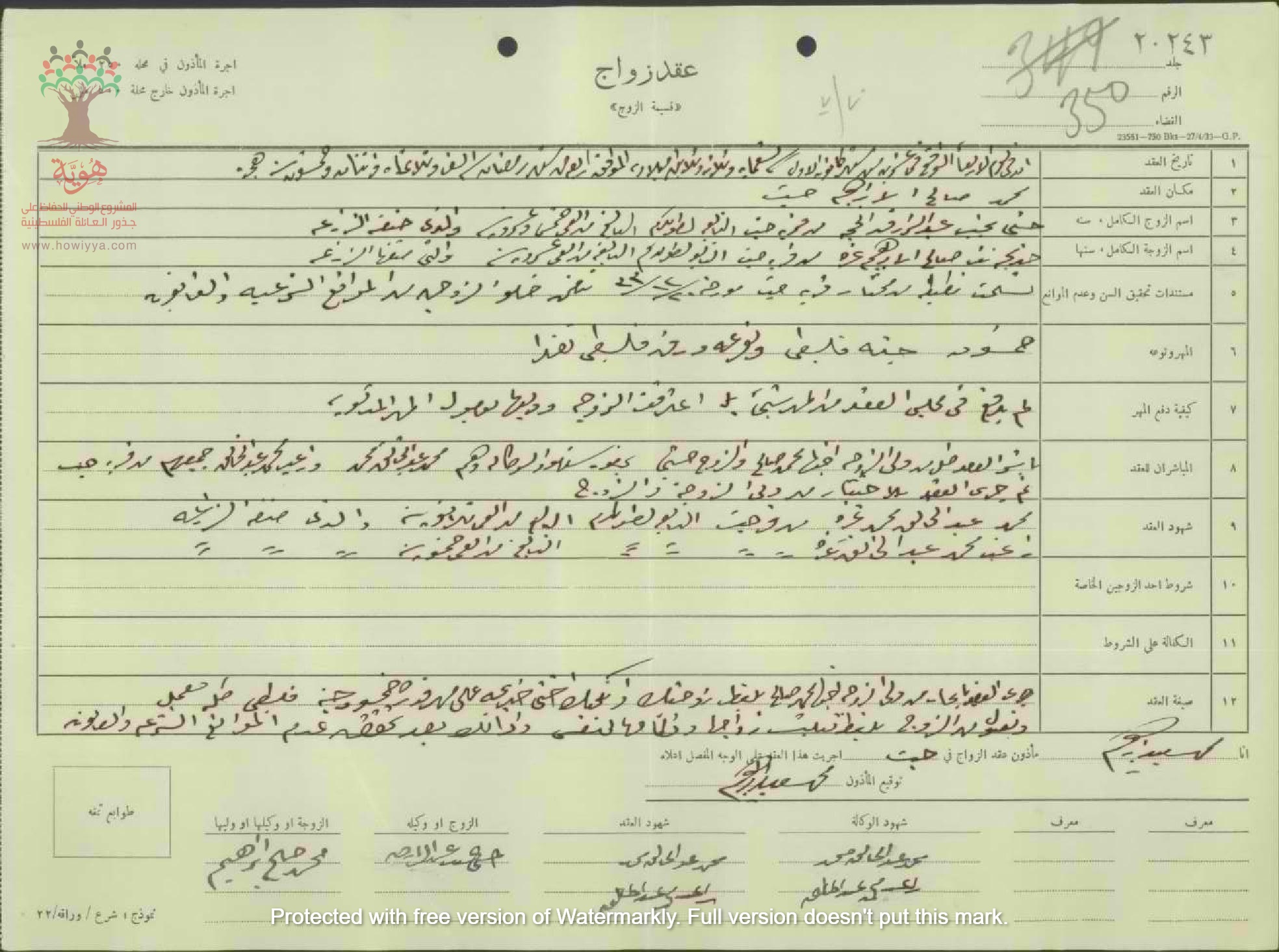 عقد زواج: حسني الحجة - خديجة عزة - طولكرم