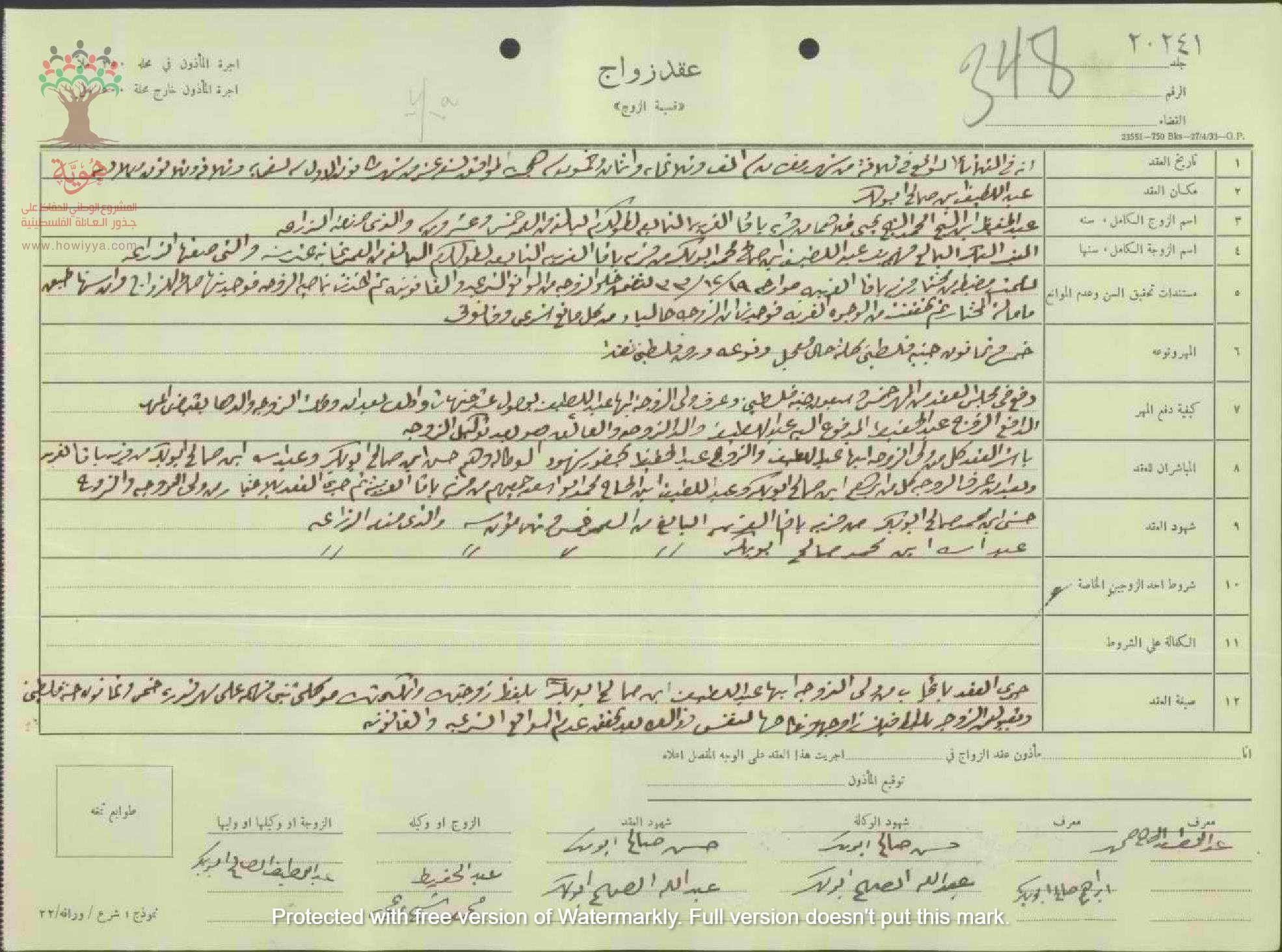 عقد زواج: عبد اللطيف يحيى - فهيمة محمد - باقة