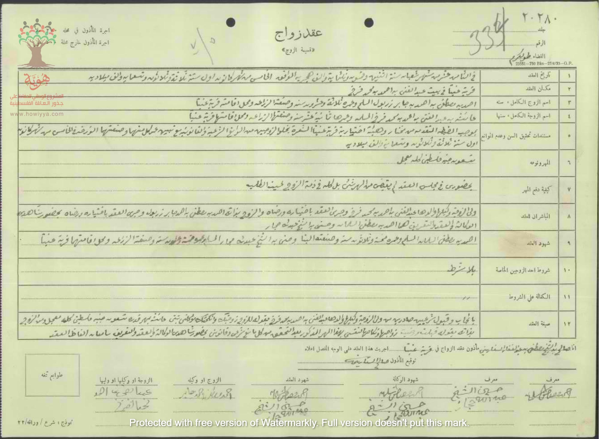 عقد زواج : احمد زربول - عائشة فرخ - عنبتا