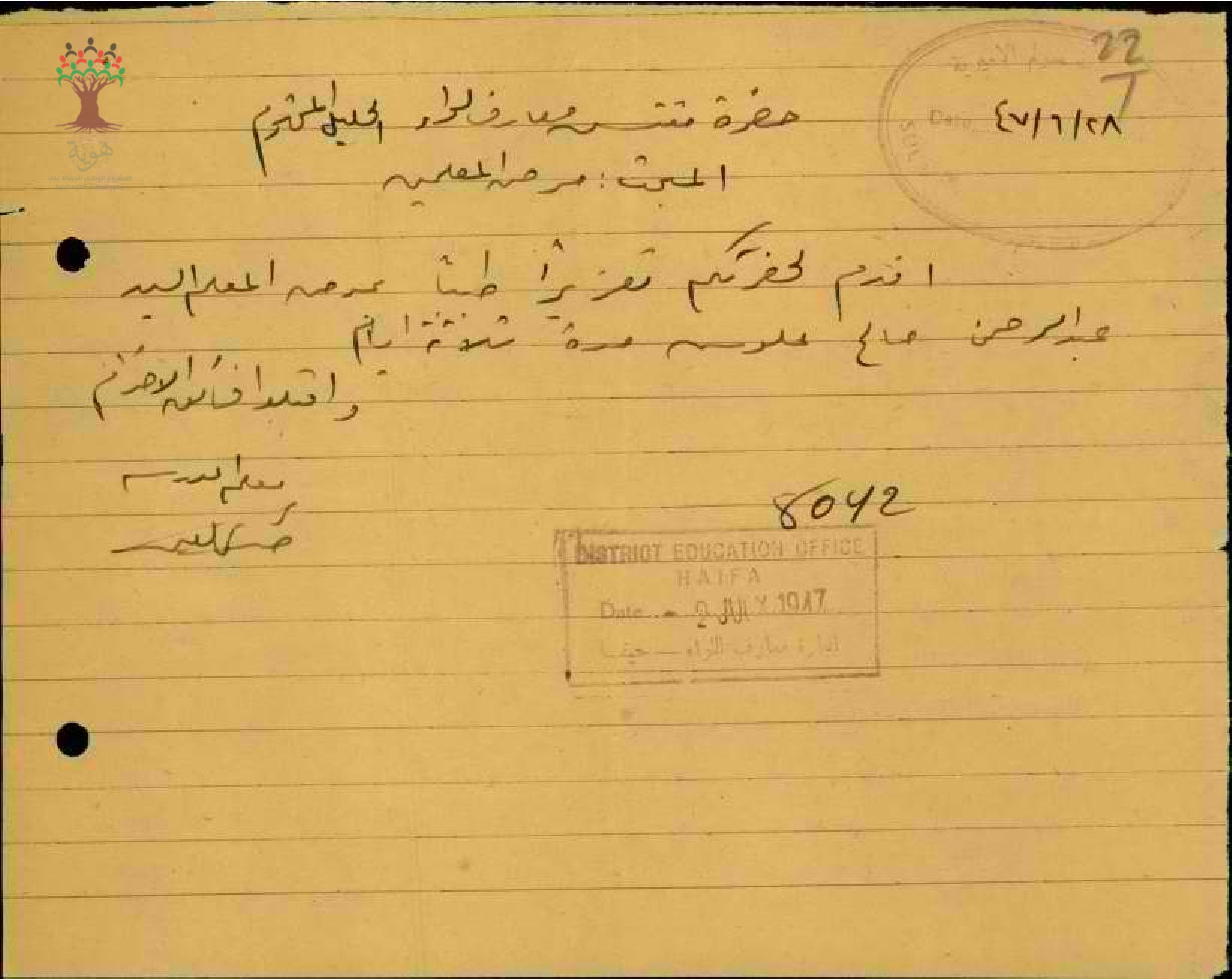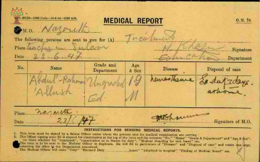 تقرير طبي عند غياب المعلم عبد الرحمن علوش من مدرسة سولم