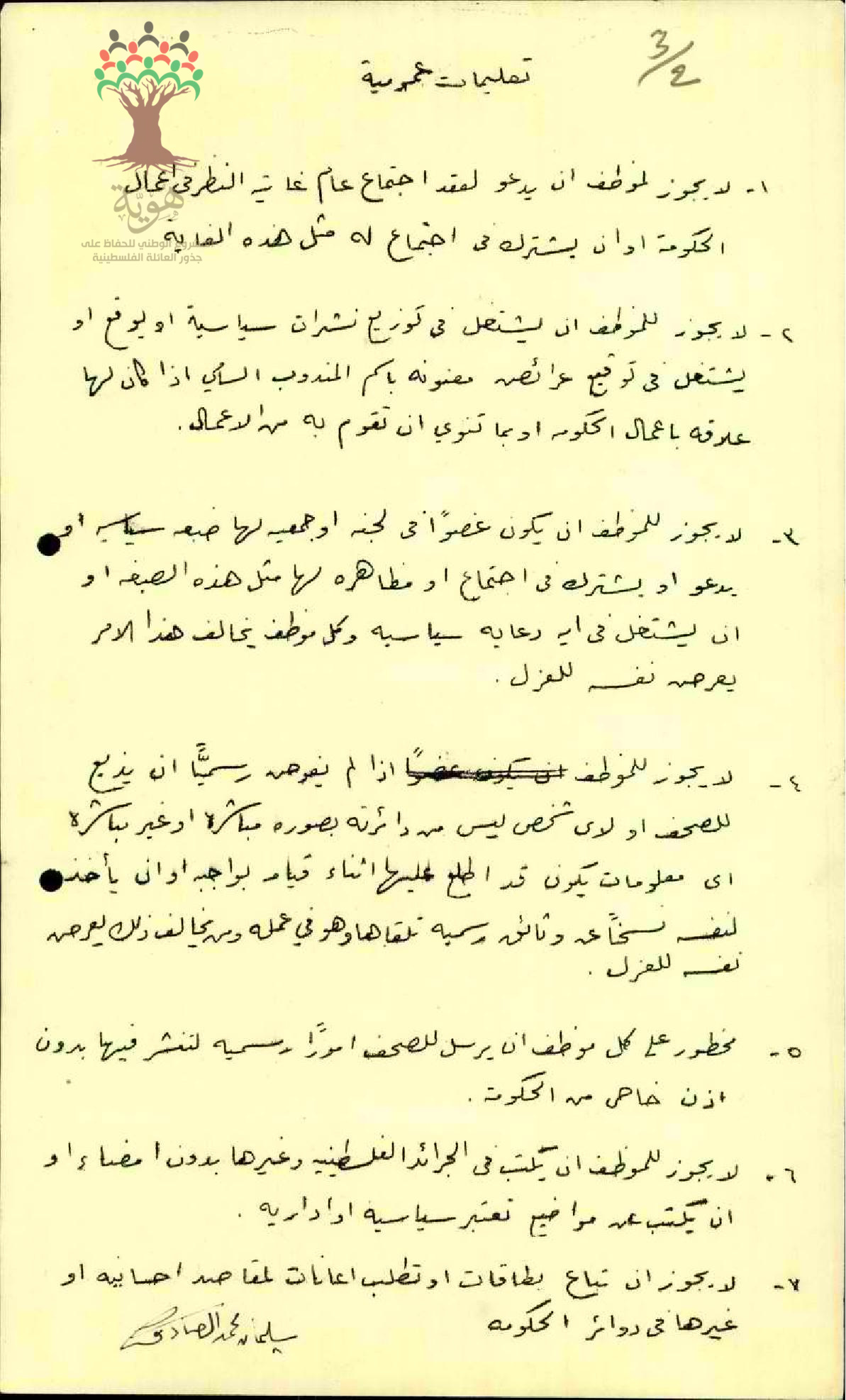 توقيع المعلم سليمان الصادق على التعليمات العمومية من دائرة المعارف